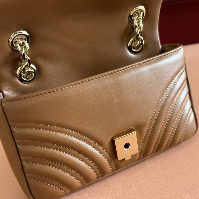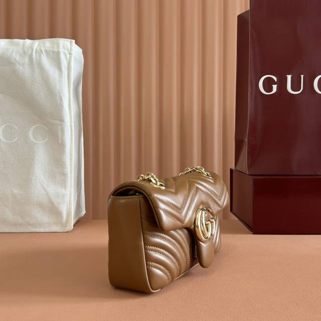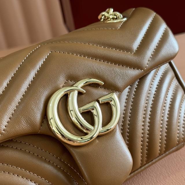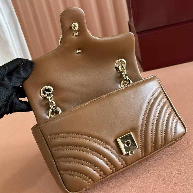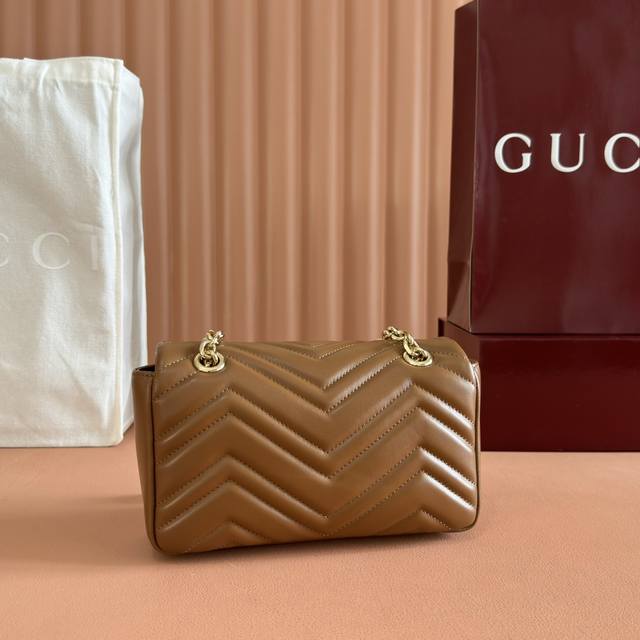 Imported original sheepskin, top-quality craftsmanship, pure copper hardware, full boutique packaging. The iconic GG Marmont series incorporates double G styling hardware and a faceted chain strap, crafted from select soft leather to create a gently curved shape. White V-shaped Matelass