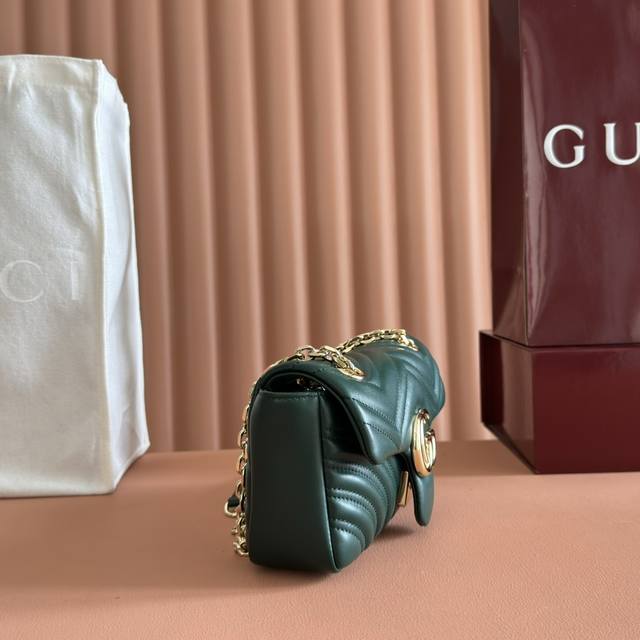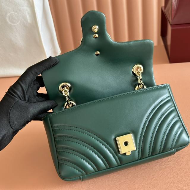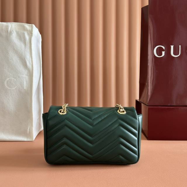 Original leather with full boutique packaging. The iconic GG Marmont series, crafted with meticulous attention to detail, features double G-shaped hardware and a faceted chain strap. The bag's soft leather creates a gracefully sculpted silhouette. White V-shaped Matelass