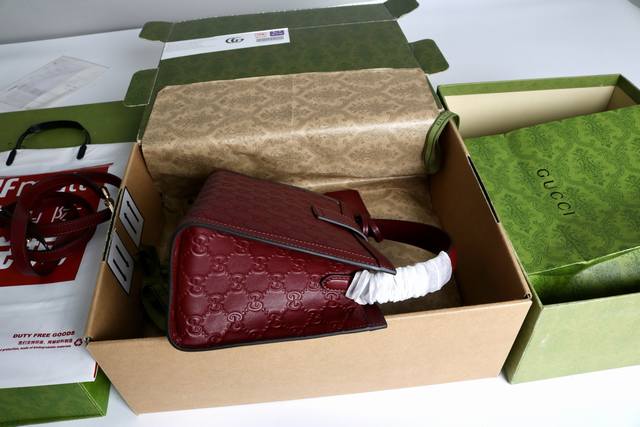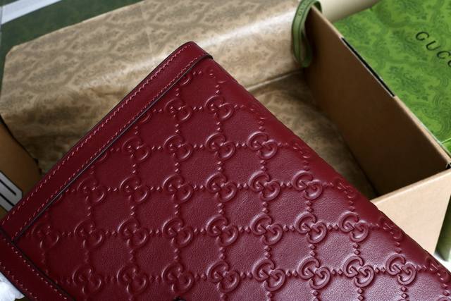 Gucci maroon Rosso Ancora Gg-embossed leather