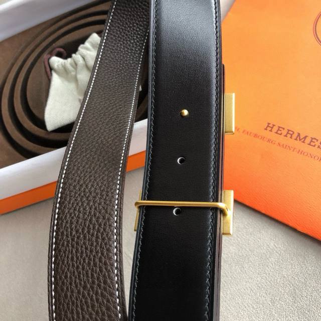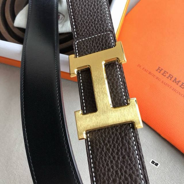Hermes Men's 3.8Cm Classic Stainless Steel H Welding Point Metal Buckle With Original Leather Grain Permanent Choice