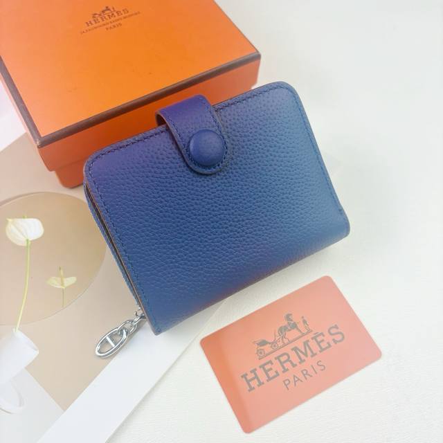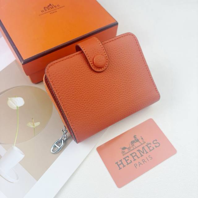 Hermes New Arrivals Silk'In Togo Women's Wallet in Barenia Calfskin. Features 6 card slots, 1 bill compartment, and 1 zip pocket. Includes original factory code. Model: 668. Dimensions: 12*10*3.5cm.