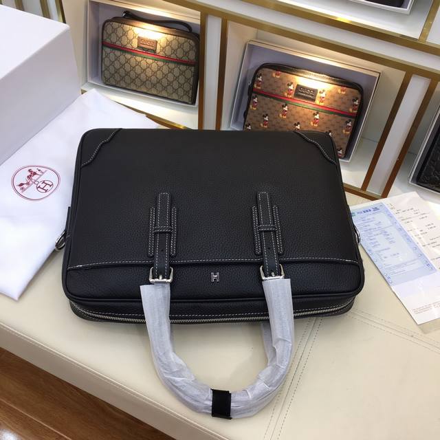 Original Hermes bag, genuine new style: High-end men's casual briefcase, same style as in boutiques, with super exquisite and elegant workmanship. Made with imported cowhide leather, boutique-grade hardware and lining. The leather is soft and comfortable to the touch. "Super high-end" Model 66429-1, color 38*29*7cm.