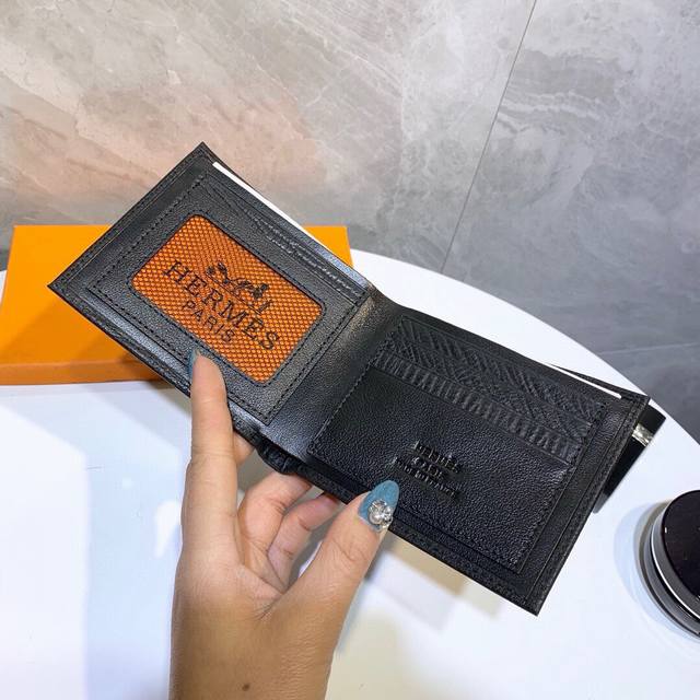 short long color black size short 12X10 long 19X10 model 8809 Hermes color black size long 19X10 short 12X10 men's soft leather long and short fold one to one imported cowhide feel invincible
