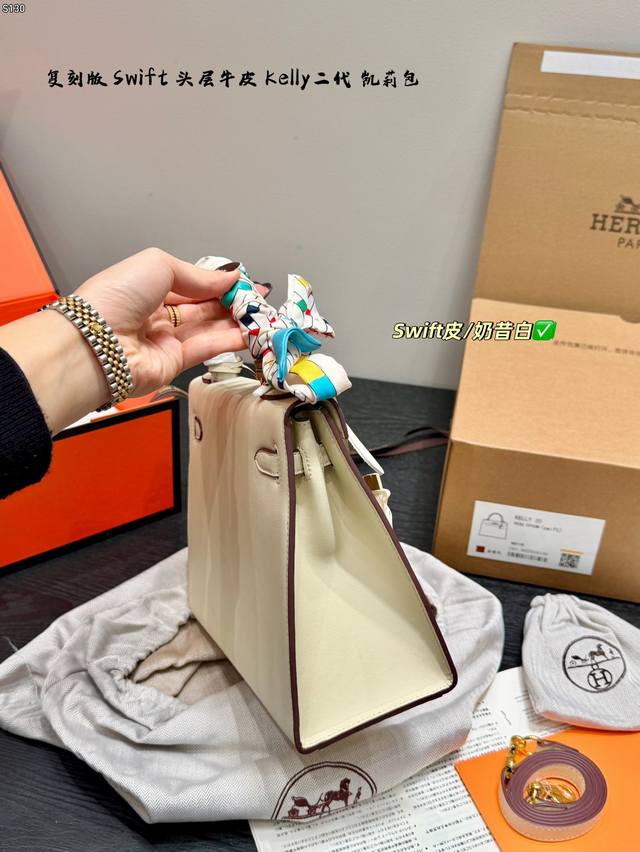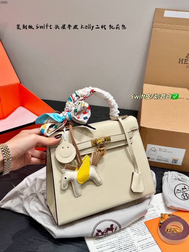 Comes with original box! Replica! Original leather! Comes with scarf + Pegasus charm. Size: 25cm. Hermes Kelly II. Swift top-grain cowhide Kelly bag/handbag. It's sooooo beautiful! It's also cute! The Swift cowhide is super soft. The bag is unique and has a great texture!