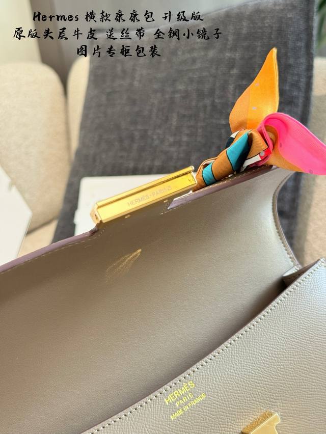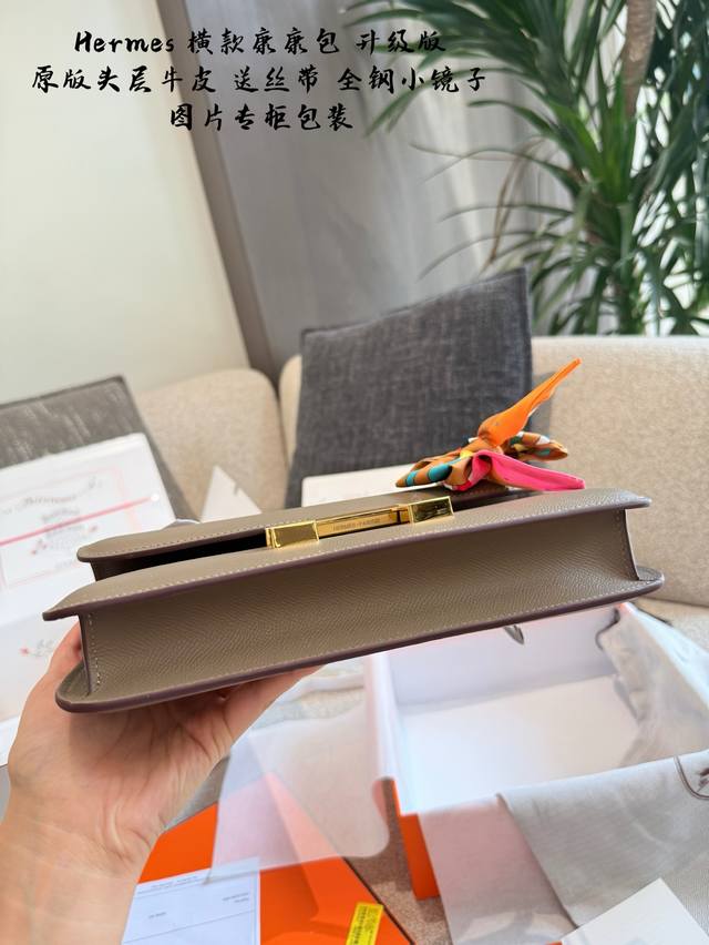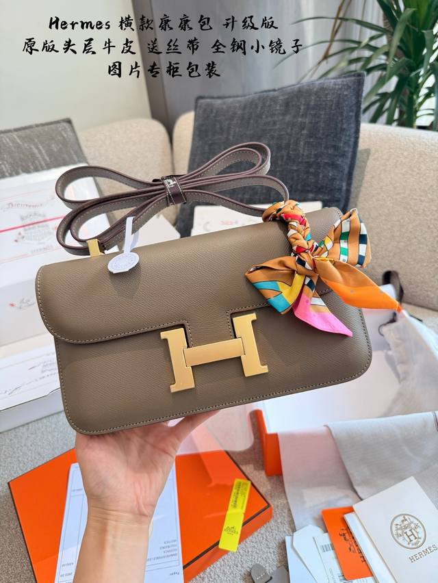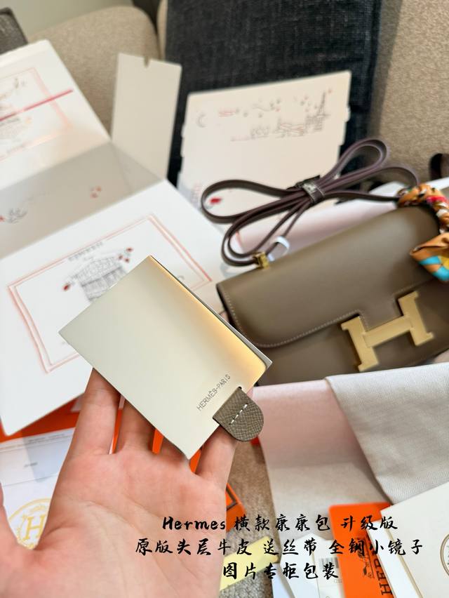 New Ribbon and All-Steel Small Mirror Included DDD [Hermes] Constance Horizontal Handbag with Gold Buckle and Palm Texture Top-Grain Leather + Irresistible Hermes Constance with Unbeatable Quality DDD This Hermes Constance horizontal handbag, with its classic design and superior quality, is an essential choice for your fashionable look. DDD The palm texture top-grain leather is a traditional material, exuding an unparalleled luster, showcasing luxury and prestige DDD Whether for everyday wear or evening parties, this charming horizontal handbag will add a unique touch to your style. DDD The gold buckle design, with its heritage significance, showcases the classic and exquisite nature of the Hermes brand. DDD You can't help but be attracted, quickly own this Hermes Constance and let your fashion style shine. 26cm Picture and Boutique Packaging DDD