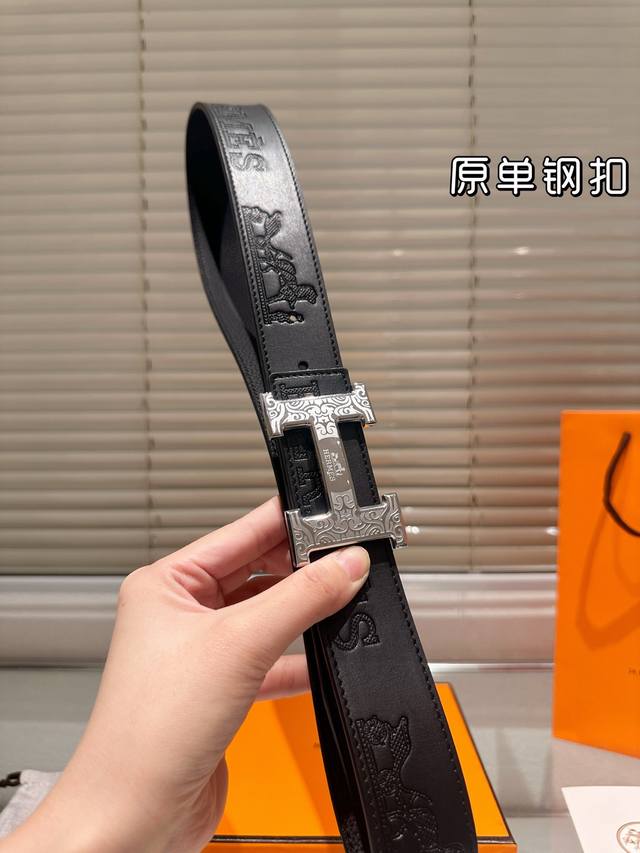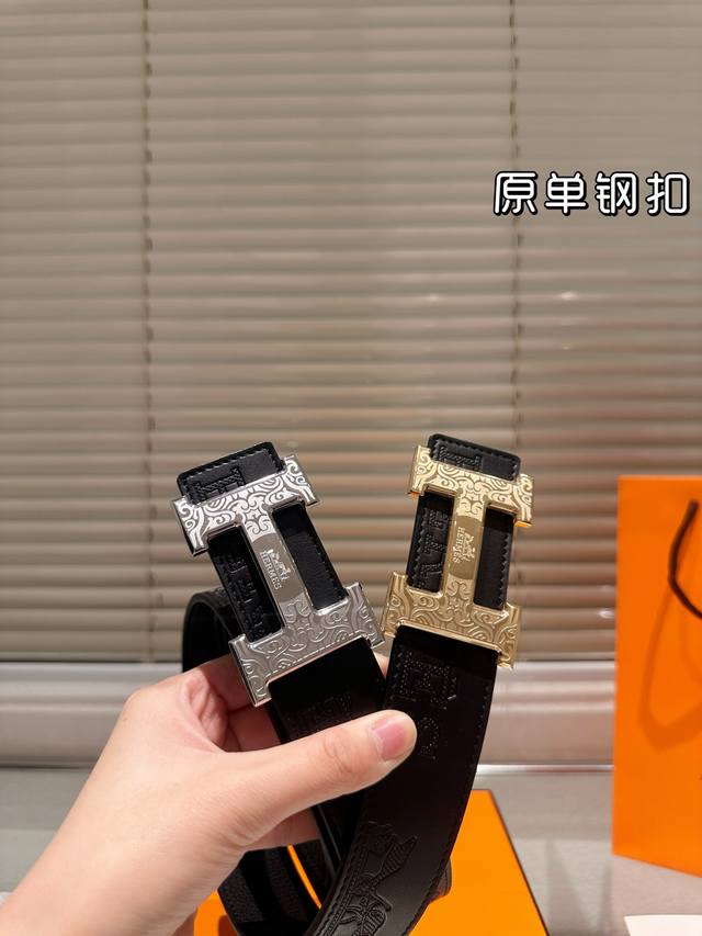 Steel Buckle DDD High-quality version! Hermes leather belt - the most popular version among unisex belts - excellent quality, complete packaging! Hardware will absolutely not fade, belt buckle is the same as in the boutique - comes with gift box, tote bag, and invoice DDD