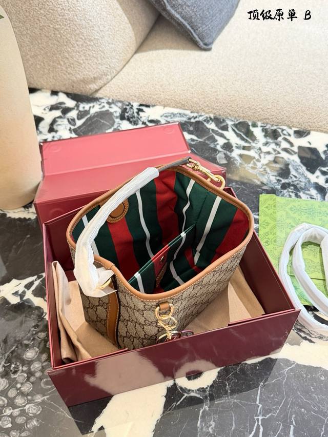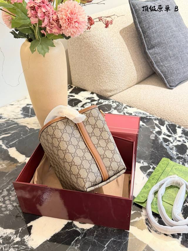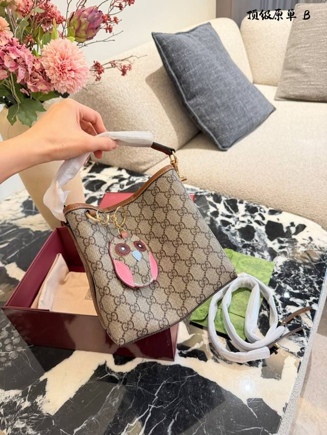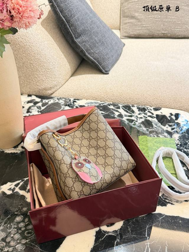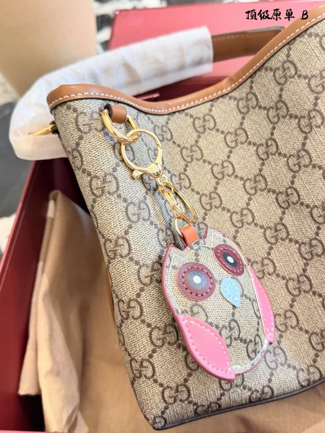 Includes keychain Ddd Gucci Gg Emblem Mini Bucket Bag DDD Gucci Gg Emblem Mini Bucket Bag, beige + dark brown Gg DDD Supreme canvas, with black leather trim and gold hardware, simple yet highly recognizable+. Dimensions approximately 20.5X18X11.5Cm, compact and lightweight, suitable for both commuting and casual occasions. DDD