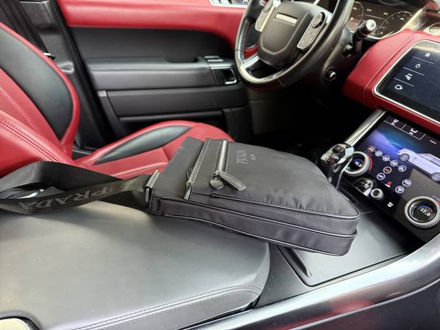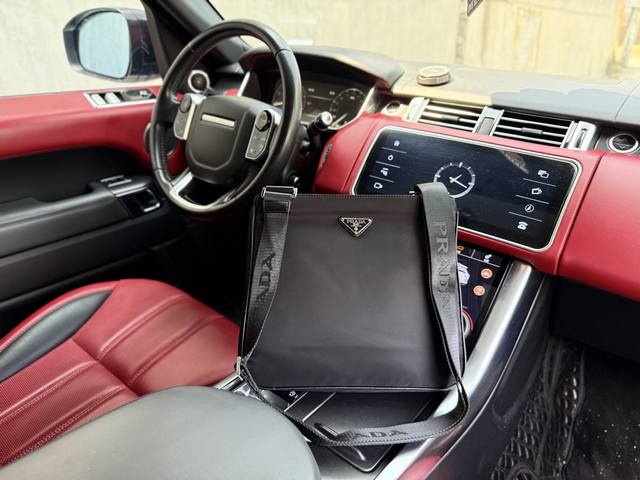 Latest high-end Prada shoulder bag. Prada messenger bag with logo and adjustable