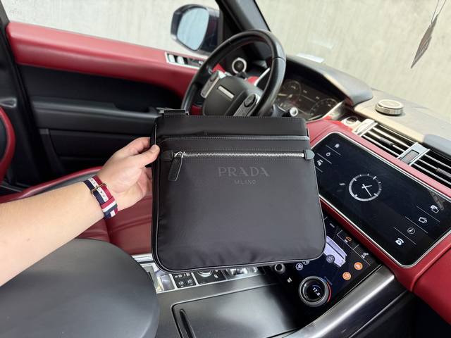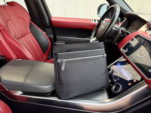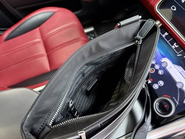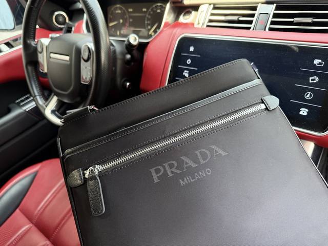 Latest high-end Prada shoulder bag. Prada messenger bag with logo and adjustable shoulder strap. Saffiano leather messenger bag for men. Black nylon and Saffiano leather messenger bag. Nylon material: metal hardware and titanium zipper. Prada logo fabric lining. Two side buckles. Triangular enamel logo on the front. This modern and stylish shoulder bag features a detachable pouch charm and spacious interior compartments, highlighting its functionality. Smooth zipper, dedicated interior lining, and high-definition hardware logo. Specifications: 29.5X26X5cm