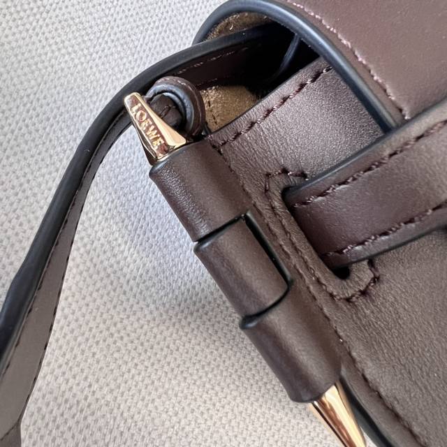 The Minigatedual Is Crafted From Soft Natural Cowhide Leather, Showcasing Loewe's Unique Leather Craftsmanship, With A Knotted Leather Strap With Saddle Stitching And A Side Locking Metal Pin, This Mini Version Has A Removable Cowhide And Jacquard Shoulder Strap! Front Flap Pulls Under The Knotted Strap For Secure Fastening, Bonded Gold Suede Lining, Two Internal Slip Compartments. Removable Shoulder Strap * Shoulder, Crossbody, Chest Hanging * Anagram Pattern Embossed In The Same Color
