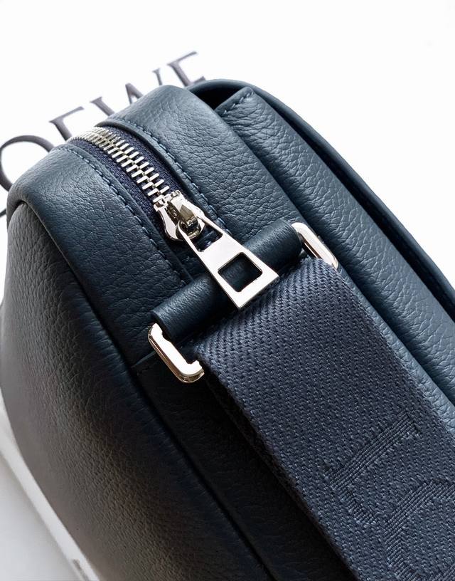 New extra small soft grained cowhide pebble messenger bag The pebble messenger bag features a practical and compact design, featuring a double signature Anagram pebble. This medium version is made from soft grained cowhide leather. *Adjustable Loewe webbing *Zip closure *One front pocket with magnetic closure, one internal slip pocket *Suede lining *Loewe silver hot stamping, Anagram pebble