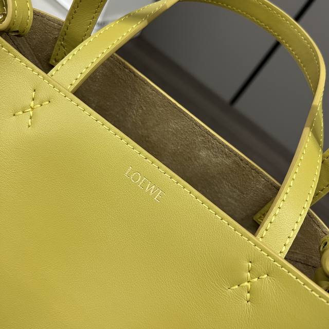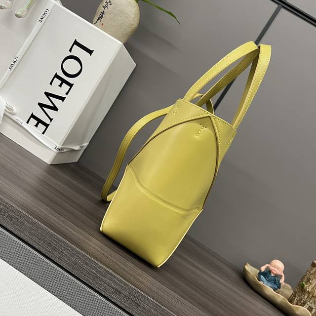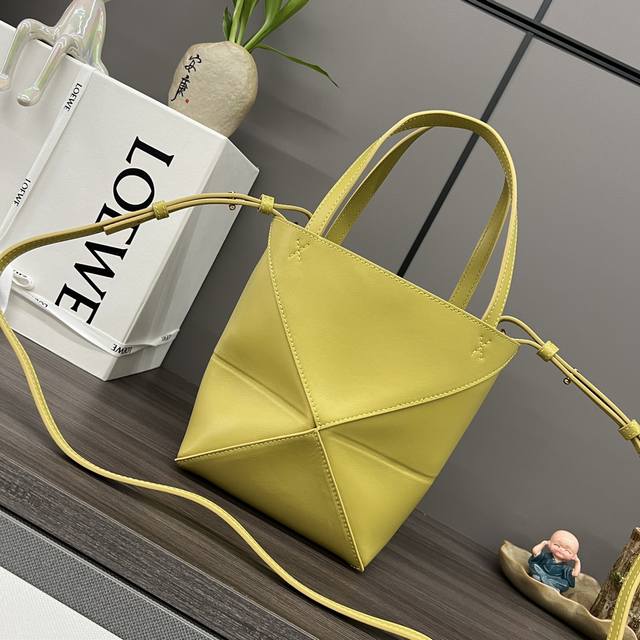 The new Loewe mini Puzzle Fold handbag in glossy calfskin draws inspiration from the geometric lines of the brand's classic handbag collection, reinterpreted with geometrically architectural panels. It can be fully folded, making it a perfect travel companion. The brand has cleverly crafted a soft and lightweight handbag, adorned with the understated elegance of the Loewe logo. This mini version is made of glossy calfskin and can be carried on the shoulder, crossbody, or by hand. It features a detachable and adjustable shoulder strap, suede lining, and Lw gold foil stamping. Size: 16.5*9.5*20cm. Model: 052322.