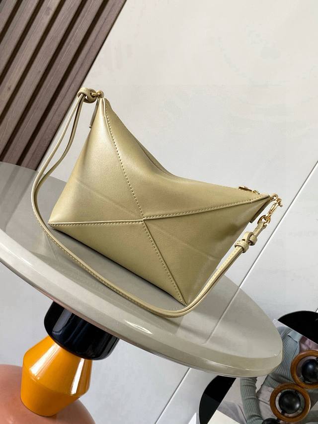 The new Puzzle Fold handbag reinterprets this versatile and practical clutch, drawing inspiration from the geometric lines of the brand's classic handbags with graphic, architectural panels. This handbag is crafted from shiny Nappa leather. *Can be carried cross-body or stored inside another handbag. *Detachable and adjustable shoulder strap *Zip closure *Suede lining* Loewe gold stamping
