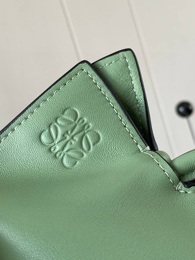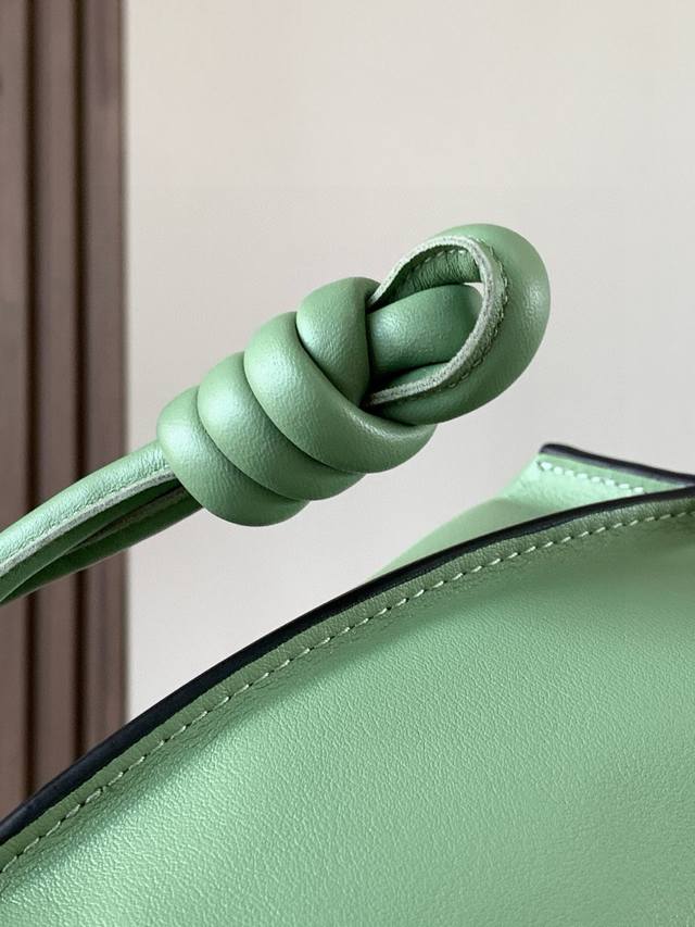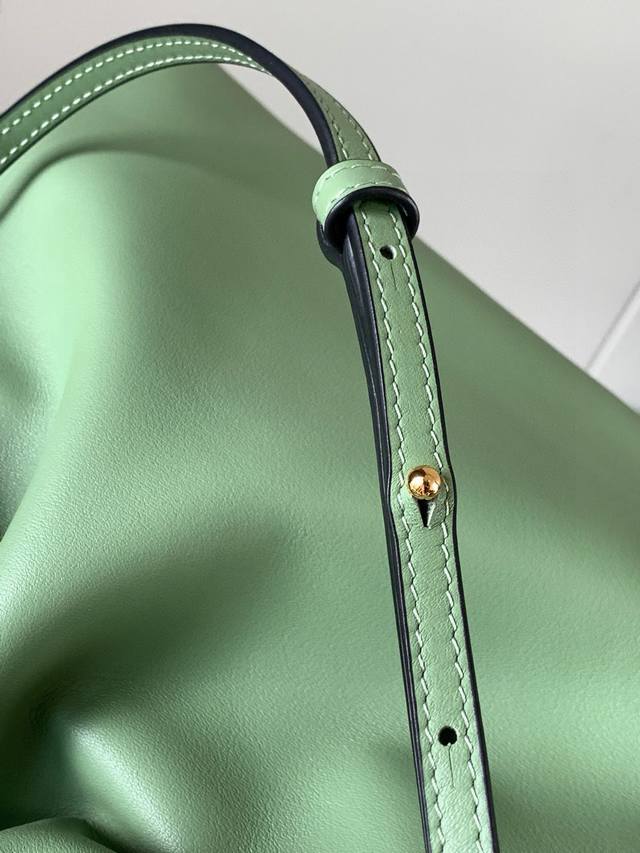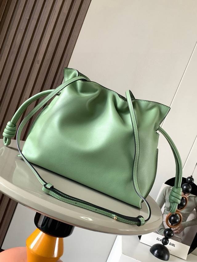 National Day Special Offer Lucky Bag 30cm New Nappa Calf Leather Flamenco Handbag. This lucky bag features a drawstring closure and a signature coiled knot. Made from Nappa calf leather, this version perfectly showcases the softness and practicality of leather in the Flamenco Knot. It's safe to say that whatever you want to look for, you can find it in the Flamenco Knot. It perfectly combines a drawstring bag and a tote bag, giving women a unique feel. While it looks incredibly simple, it's also very special, exuding a casual yet stylish vibe. The bag's name is the same as the flamenco dance of the Spanish Gypsies, which perfectly represents Loewe's casual, elegant, and individualistic design style. The leather is smooth Spanish calfskin, exceptionally soft to the touch, with a sturdy and scratch-resistant suede lining. Highly visible in street style photos, it can be used as a shoulder bag or a tote bag. The distinctive drawstring design and soft leather construction, when tightened, create a smoother silhouette, making it suitable for both work and leisure. Size: 30cm~24.5cm~10.5cm Style Number: 9015 Color: Green/Gray-Green