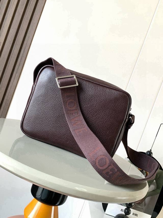 New Extra Small Soft Grained Calfskin Pebble Messenger Bag. The Pebble messenger bag features a practical and sophisticated design with the iconic Anagram Pebble logo. This medium version is crafted from soft grained calfskin leather. * Adjustable Loewe webbing * Zip closure * One magnetic snap closure front pocket, one interior slip pocket * Suede lining * Loewe silver foil stamping, Anagram Pebble