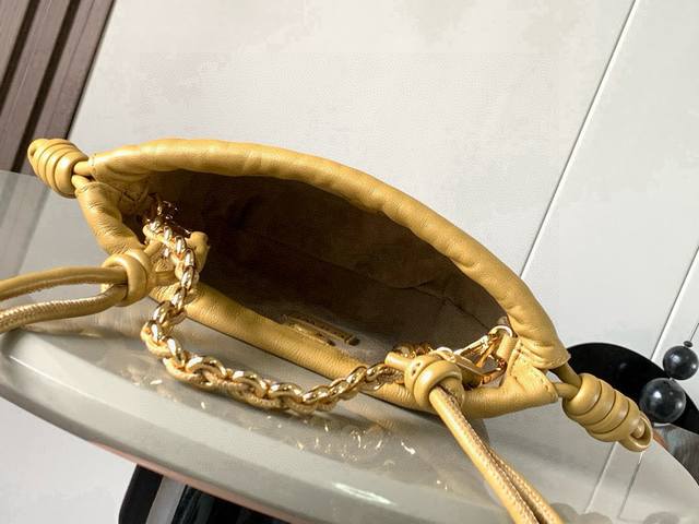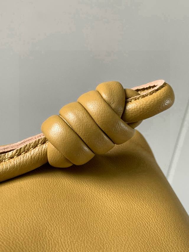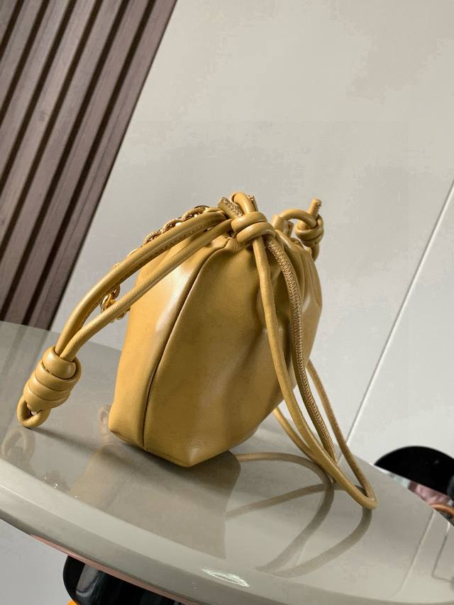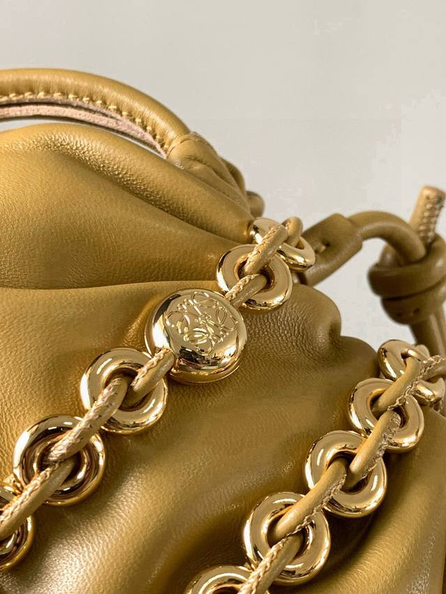 Original Leather Flamenco Purse Mini Nappa Leather Clutch Bag (Celebrity Style) The Flamenco Purse handbag features a pleated design with key details such as the iconic rope knot on the side. Stylish and versatile, it can be carried as a clutch, shoulder bag with the donut chain strap, or crossbody bag with the leather shoulder strap. This version is crafted from supple Nappa leather. * Can be carried on the shoulder, crossbody, or by hand * Detachable and adjustable leather shoulder strap * Detachable donut chain with Anagram engraved pebble pattern * Discreet magnetic closure * Suede lining * Loewe gold or silver foil stamping Style Number: 9058 Size: 23cm