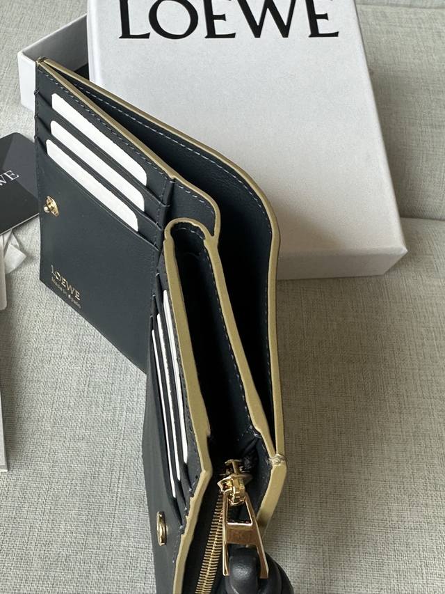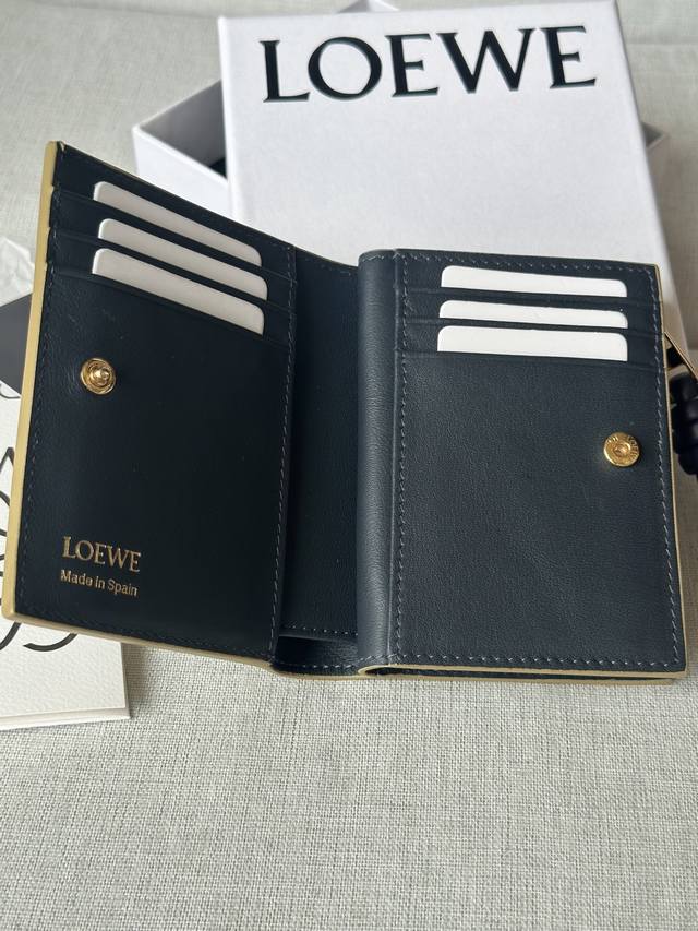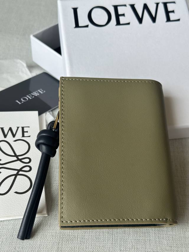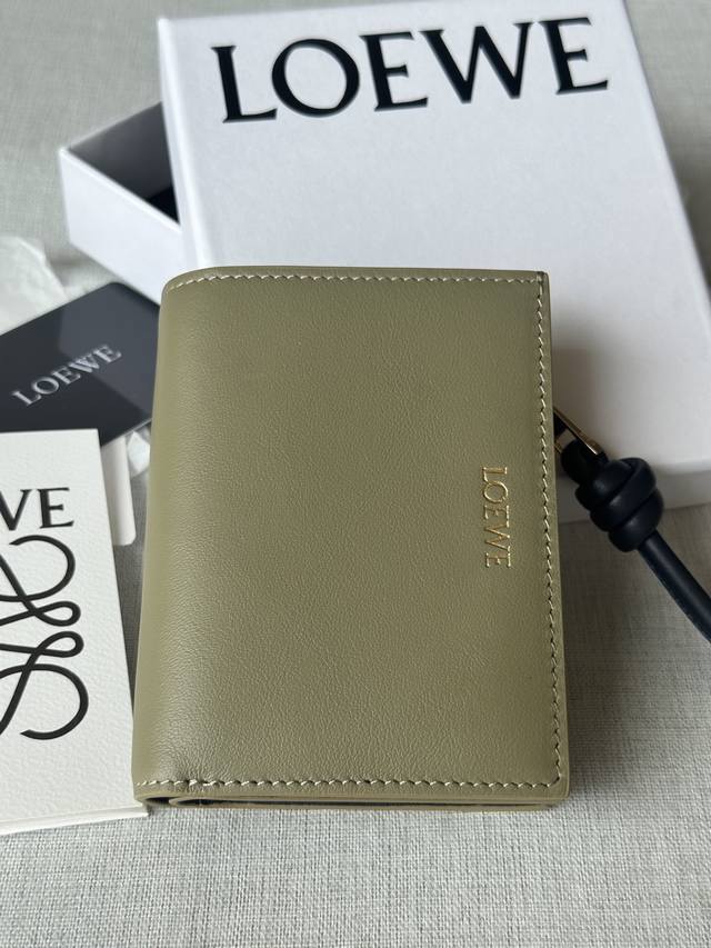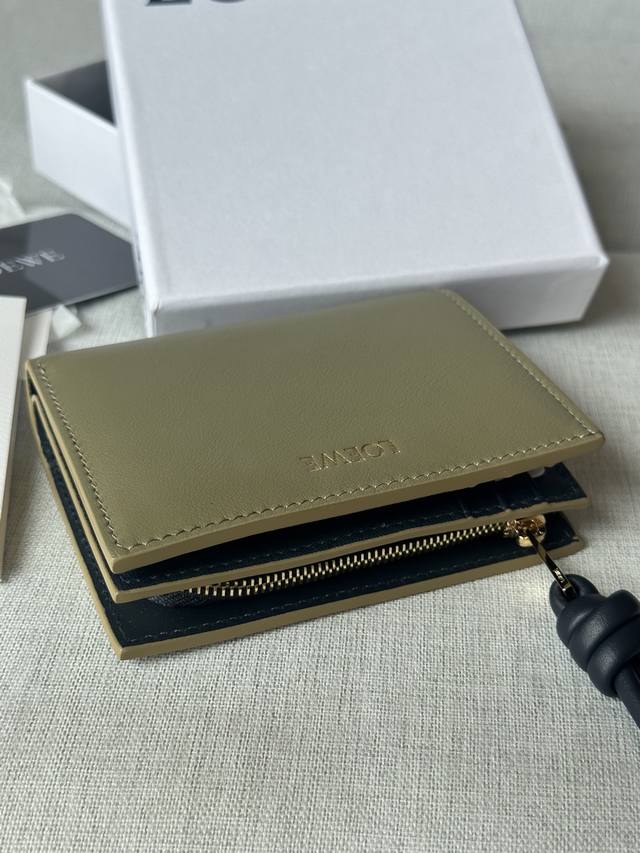 Original Leather DDD Glossy Nappa Calfskin String-Knot Short Wallet DDD Model X1 Eucalyptus DDD Glossy Nappa Calfskin Short Wallet with Contrast Color String-Knot Zipper Pull. DDD Six Card Slots, Three Internal Slip Pockets DDD One Zippered Coin Divider, Calfskin Zipper Pull DDD Snap Button DDD Contrast Color Calfskin Lining DDD Loewe Gold Stamping DDD Glossy Nappa Calfskin DDD 11.5-8.5 DDD