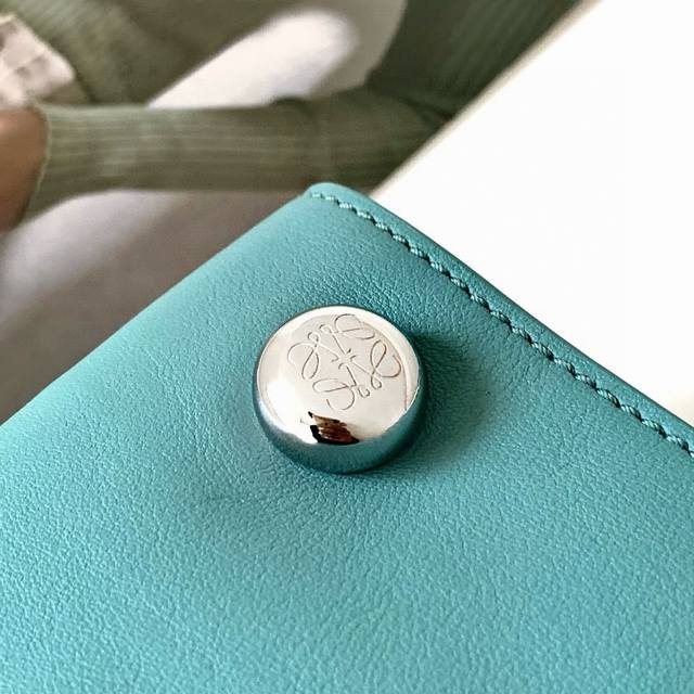 Original Leather Ddd New Smooth Calfskin Pebble Pouch. This smooth calfskin pouch features a folding structure, tubular shoulder strap, and the iconic Anagram Pebble logo. Don't let its small size fool you; it's surprisingly spacious! It can hold all your daily essentials while remaining lightweight. Made of calfskin, it's incredibly soft and supple to the touch. It's highly durable and extremely lightweight. The lining is made of suede calfskin, giving it a premium feel. Adjustable shoulder strap, 63cm-123cm length. *Inner pocket* *Leather lining* Loewe gold foil stamping, engraved Anagram logo. Ddd Color: Aquamarine Ddd Size: 17cm