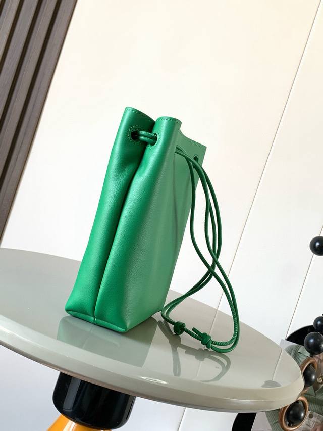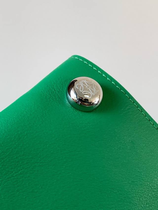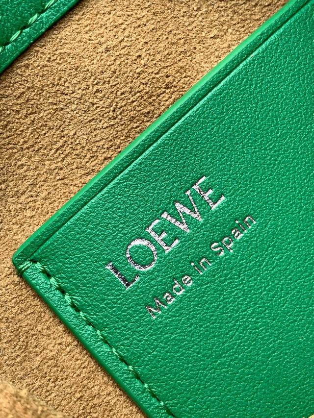 Original Leather Ddd New Smooth Calfskin Pebble Pouch. This smooth calfskin pouch features a folding structure, tubular shoulder strap, and the iconic Anagram Pebble logo. Don't let its small size fool you; it's surprisingly spacious! It can hold all your daily essentials while remaining lightweight. Made of calfskin, it's incredibly soft and supple to the touch. It's highly durable and extremely lightweight. The lining is made of suede calfskin, giving it a premium feel. Adjustable shoulder strap, 63cm-123cm length. *Inner pocket* *Leather lining* Loewe gold foil stamping, engraved Anagram logo. Ddd Color: Evergreen Ddd Size: 17cm