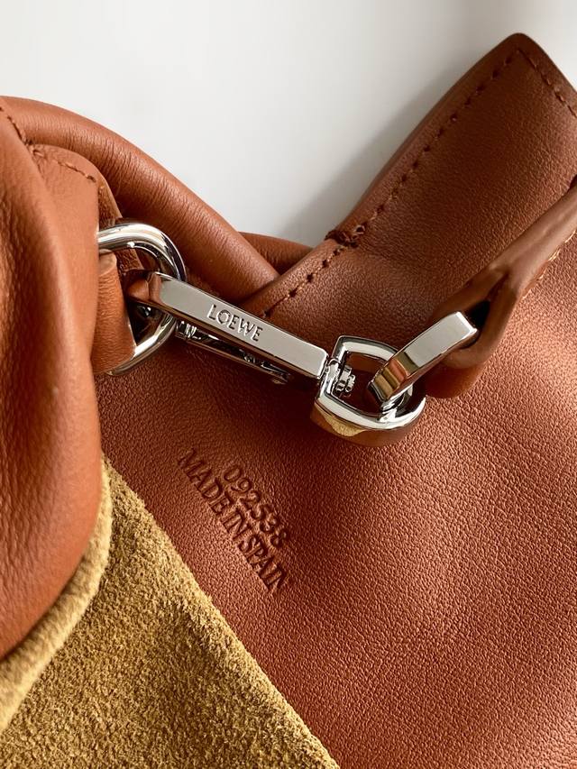 Original Leather Ddd New Version Dream Lucky Bag 30Cm New Nappa Calf Leather Flamenco Handbag Lucky Bag features a drawstring closure and a signature coiled knot. This version is made of Nappa calf leather. It must be said that this brand perfectly showcases the softness of leather and practicality in the Flamenco Knot. It can be said that whatever you want, you can find it in the Flamenco Knot. It perfectly combines the drawstring bag and tote bag, giving girls a different feeling. Although it looks simple, it is very special and casually stylish. The name of this bag is the same as the flamenco dance of the Spanish Gypsies, which also represents Loewe's casual, elegant and individualistic design style. The leather is smooth Spanish calfskin with a particularly soft feel. The suede leather lining is very sturdy and scratch-resistant. It has a very high exposure rate in street photography. In addition to being a shoulder bag, it can also be used as a tote bag. The unique drawstring design and soft leather loading make the lines more streamlined when the drawstring is tightened. It is very suitable for both work and leisure. Ddd Size: 30cm~24.5cm~10.5cm Style Number: 9043 Color: Brown