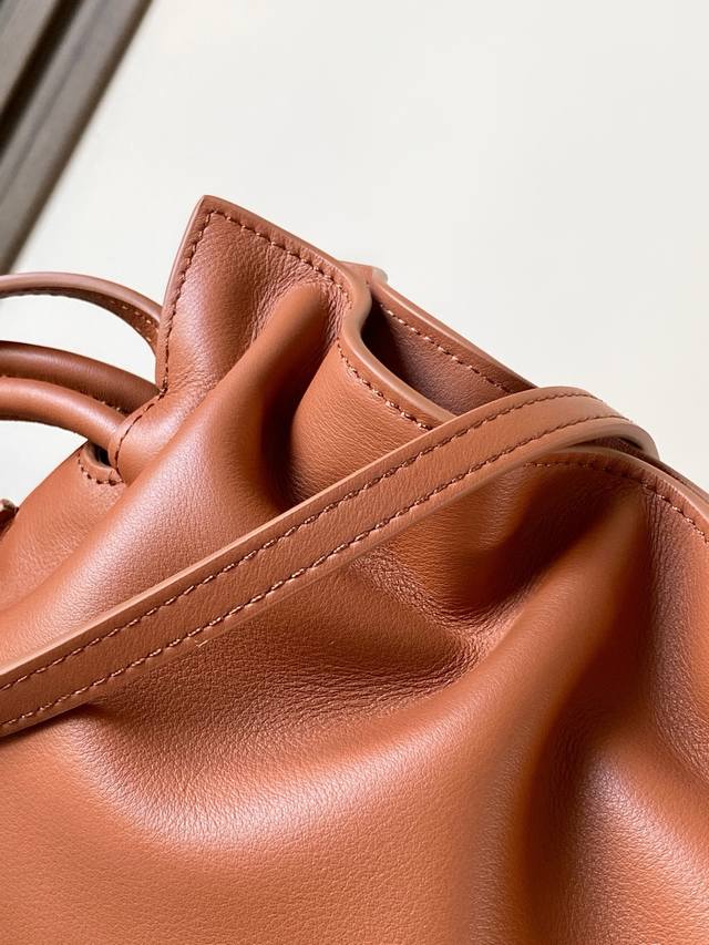 Original Leather Ddd New Version Lucky Bag Mini 23cm New Nappa Calf Leather Flamenco Handbag Lucky Bag features a drawstring closure and a signature coiled knot. This version is made of Nappa calf leather. It must be said that this brand perfectly showcases the softness of leather and practicality in the Flamenco Knot. It can be said that whatever you want, you can find it in the Flamenco Knot. It perfectly combines the drawstring bag and tote bag, giving girls a different feeling. Although it looks simple, it is very special and casually stylish. The name of this bag is the same as the flamenco dance of the Spanish Gypsies, which also represents Loewe's casual, elegant and individualistic design style. The leather is smooth Spanish calfskin, which feels particularly soft. The suede leather lining is very sturdy and scratch-resistant. It has a very high exposure rate in street photography. In addition to being a shoulder bag, it can also be used as a tote bag. The characteristic drawstring design and soft leather loading make the lines more streamlined when the drawstring is tightened. It is very suitable for both work and leisure. Ddd Size: 23cm~18cm~9cm Style Number: 9044 Color: Brown
