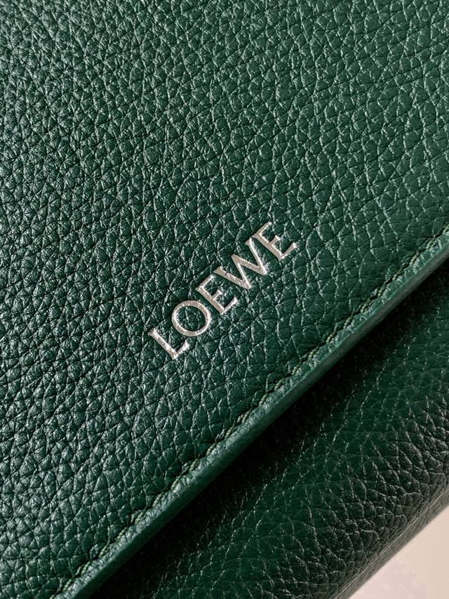 Original Leather Pebble Messenger Bag (New Extra Small Size) - Soft Grained Calfskin Leather. This Pebble messenger bag features a practical and sophisticated design with the iconic Anagram pebble logo. This medium size version is crafted from soft grained calfskin leather. Features include: * Adjustable Loewe webbing * Zipper closure * One magnetic snap closure front pocket, one interior slip pocket * Suede lining * Loewe silver foil stamping, Anagram pebble. Color: Evergreen. Size: 23cm