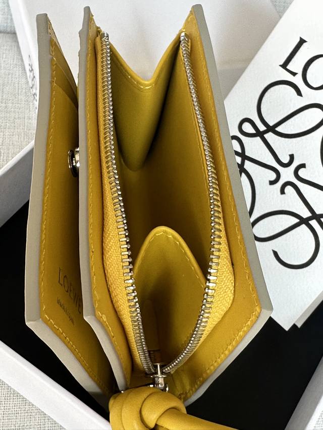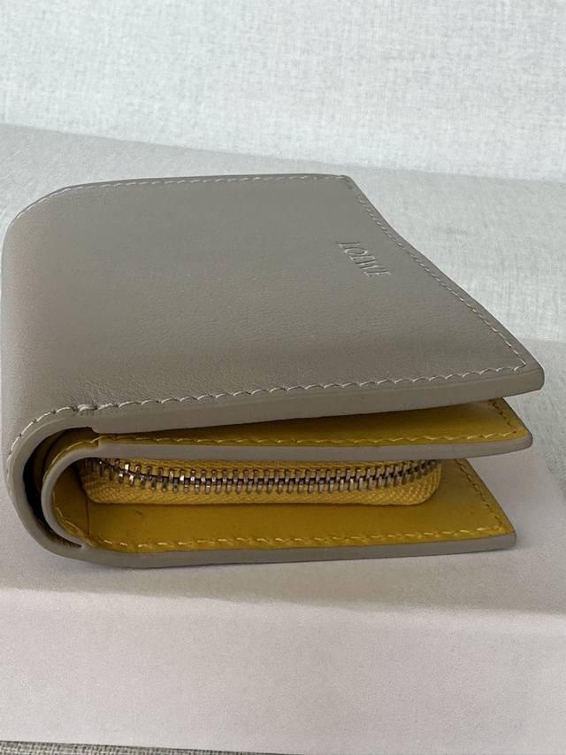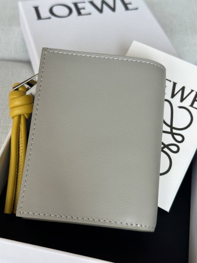 Original Leather Wallet DDD Glossy Nappa Calfskin String-Knot Short Wallet DDD Model X1 Shell Grey DDD Glossy Nappa Calfskin Short Wallet with Contrast Color String-Knot Zipper Pull. DDD Six Card Slots, Three Internal Slip Pockets DDD One Zippered Coin Divider, Calfskin Zipper Pull DDD Snap Button DDD Contrast Color Calfskin Lining DDD Loewe Gold Stamping DDD Glossy Nappa Calfskin DDD 11.5-8.5 DDD