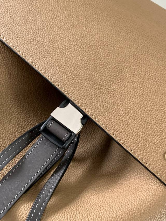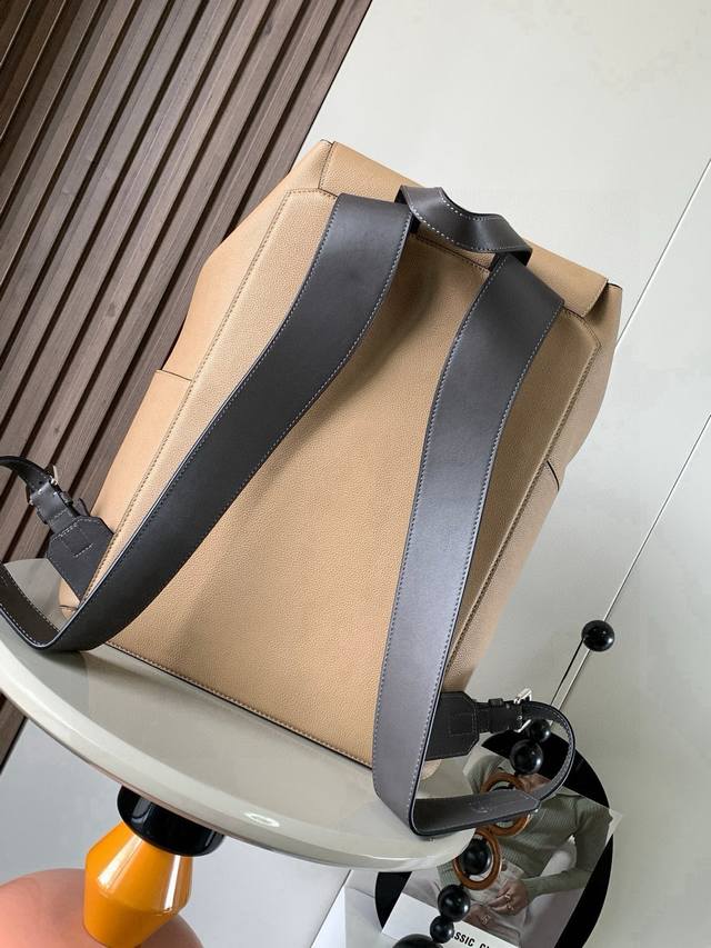 Puzzle Backpack - Soft Grained Calfskin Military Backpack. This spacious and versatile backpack is crafted from soft grained calfskin and classic calfskin, offering exceptional comfort. It's durable and won't strain your shoulders. The design features Loewe's classic geometric design, easily recognizable without a prominent logo
