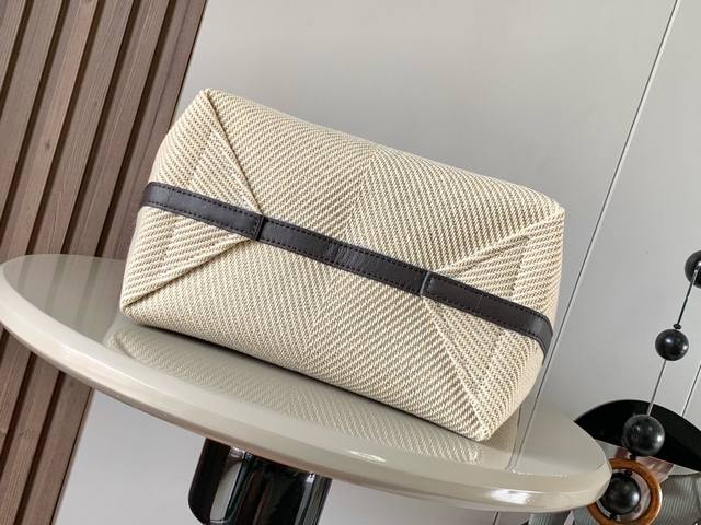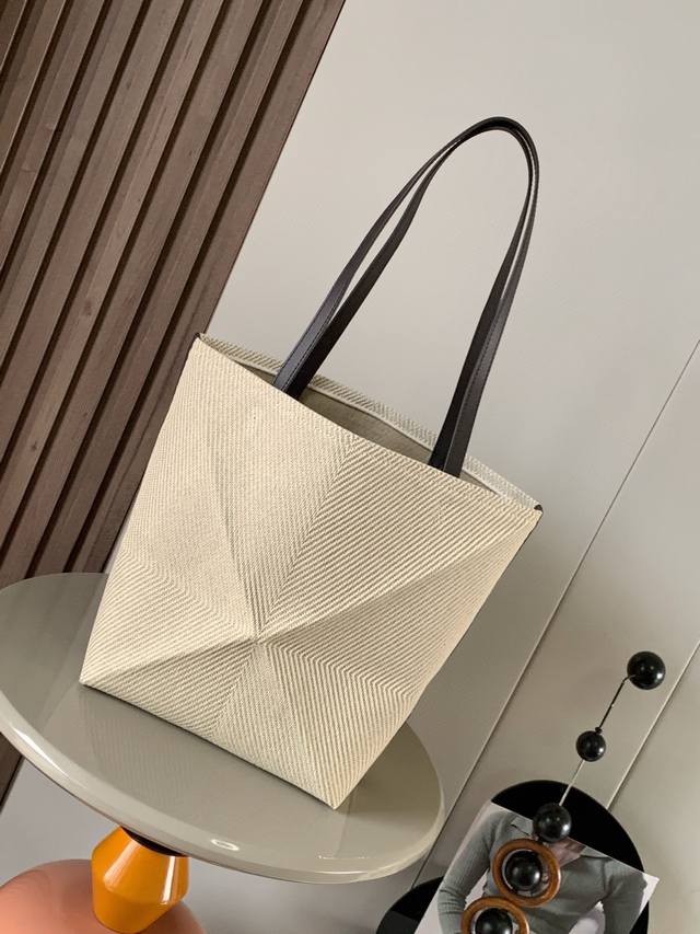 The Puzzle Fold Handbag draws inspiration from the geometric lines of the brand's classic handbag series and is reinterpreted with panels full of geometric architectural beauty. It can be completely folded and is a good travel companion. The practical and design-oriented bag brand uses creative ingenuity to create a soft and light handbag with a low-key and elegant Loewe brand logo. This version is made of cotton jacquard. * Can be carried on the shoulder or by hand * Synthetic leather lining * Loewe embroidery