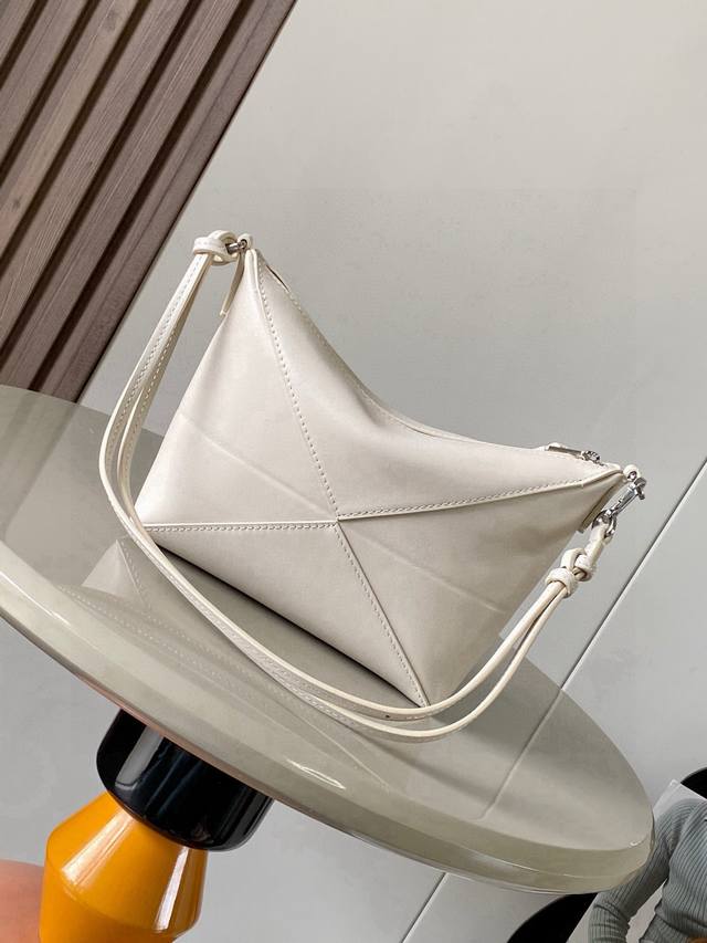 The new Puzzle Fold handbag reimagines this versatile and practical clutch, drawing inspiration from the geometric lines of the brand's classic handbags with graphic, architectural panels. This handbag is crafted from shiny Nappa leather. *Can be carried cross-body or stored inside another bag. *Detachable and adjustable shoulder strap *Zip closure *Suede lining* Loewe gold stamping