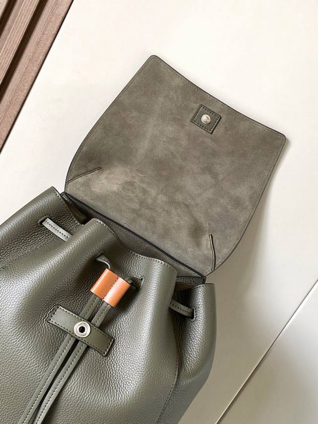 loewe Drawstring Backpack, Large Size, Grained Cowhide School Bag, New Model Backpack. This Is A Backpack Made Of Soft Grained Cowhide And Classic Cowhide. It Is Equipped With A Drawstring Closure And A Front Flap* And Is Equipped With Snaps. The Internal Pockets Have A Large Capacity And Are Widely Used*. It Is Full Of High-End Feeling. The Whole Body Is Made Of Lychee Calfskin With Anagram Print. It Is Not Only Low-Key And Textured, But Also Wear-Resistant And Resistant. It Is Safe And Practical With Buckle Switch. People Who Don