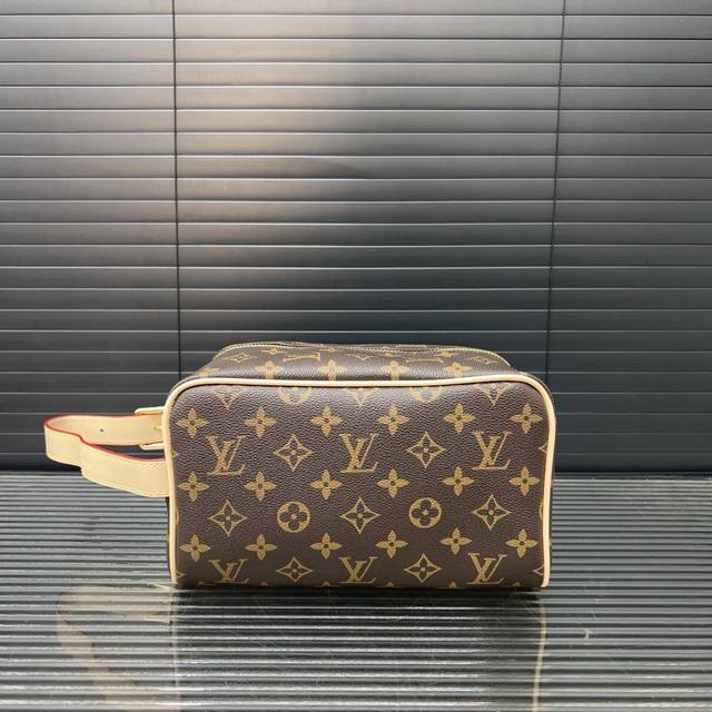 Lv printed toiletry bag, clutch, and cosmetic bag, classic and versatile. Photo taken of the original product, original fabric, and shipped with a dust bag and gift box (12 x 22 cm).