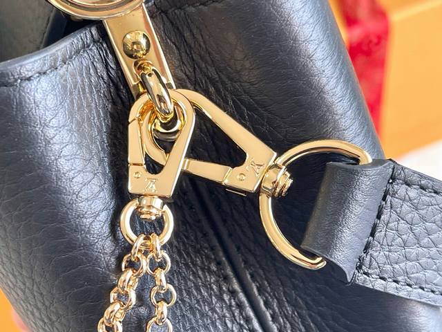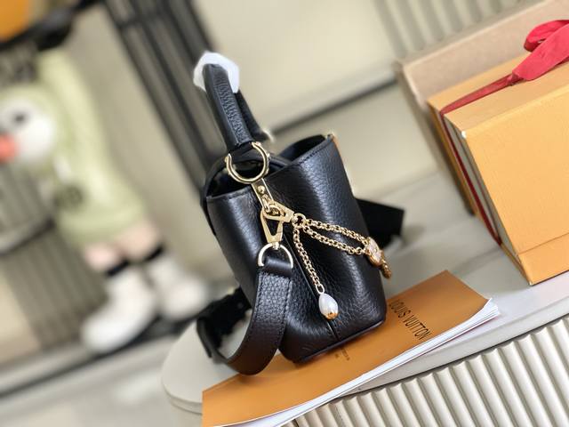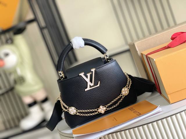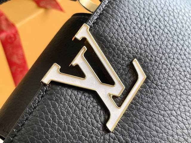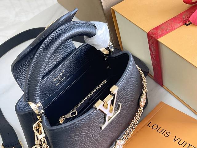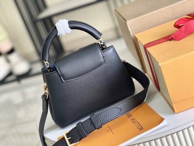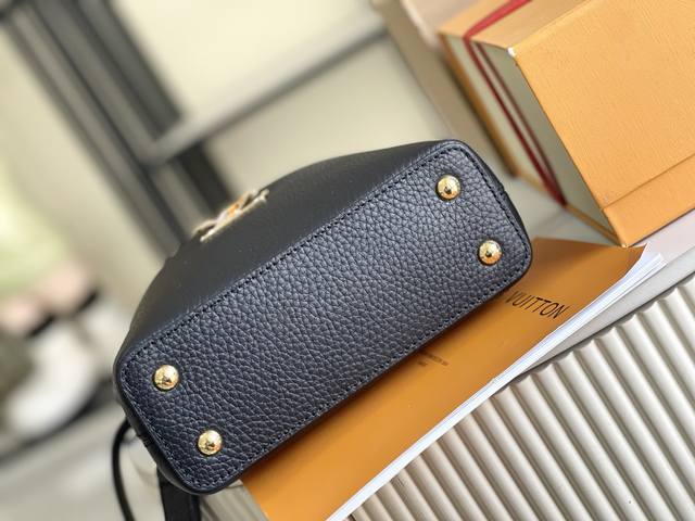 163 Premium Chip with Full Packaging Premium Original Leather M25461 Black Mini Upgraded Hardware Capucines Mini Handbag Ddd. Crafted from full-grain Taurillon leather, this bag embodies understated luxury. The iconic LV signature, made of lustrous mother-of-pearl, adds a subtle sheen to the piece. The bag's compact size belies its actual capacity: it will hold two smartphones, a long wallet, and other essentials. Dimensions: 21 x 14 x 8 cm DDD