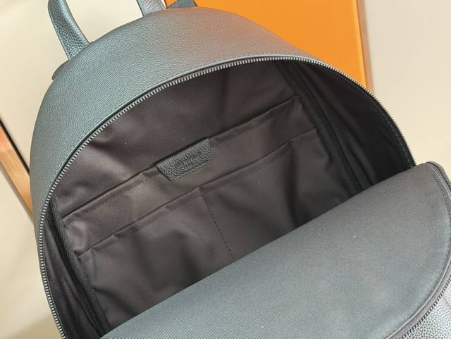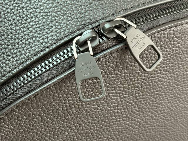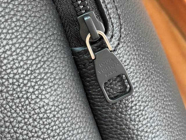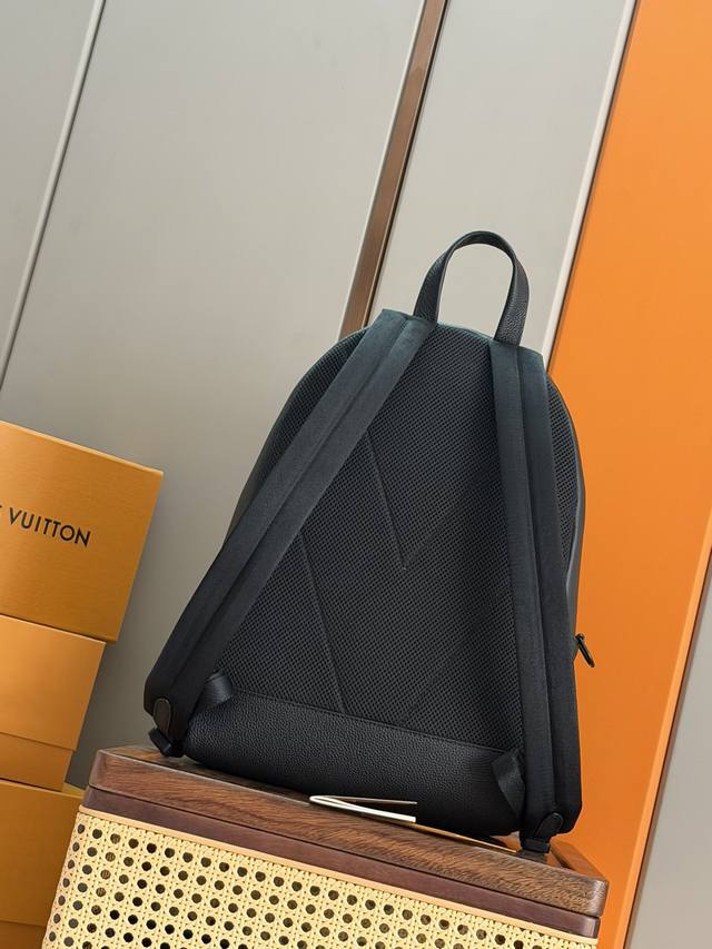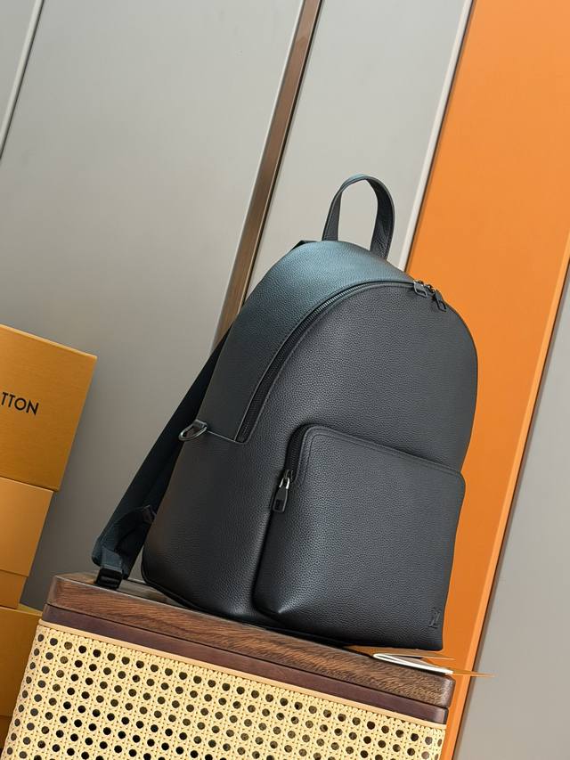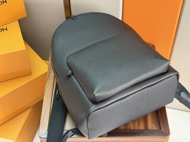 163C01 Dynamic Chip Top-Tier Original Model: M15259 Discovery Work Backpack. This backpack features a spacious design crafted from waxed cowhide leather and a fabric lining, ideal for everyday essentials. Padded compartments and slip pockets can hold a 14-inch laptop and a mobile phone respectively, while an embossed LV zippered outer pocket allows for easy access. Dimensions: 42 x 19 x 32 cm (H x W x Length)