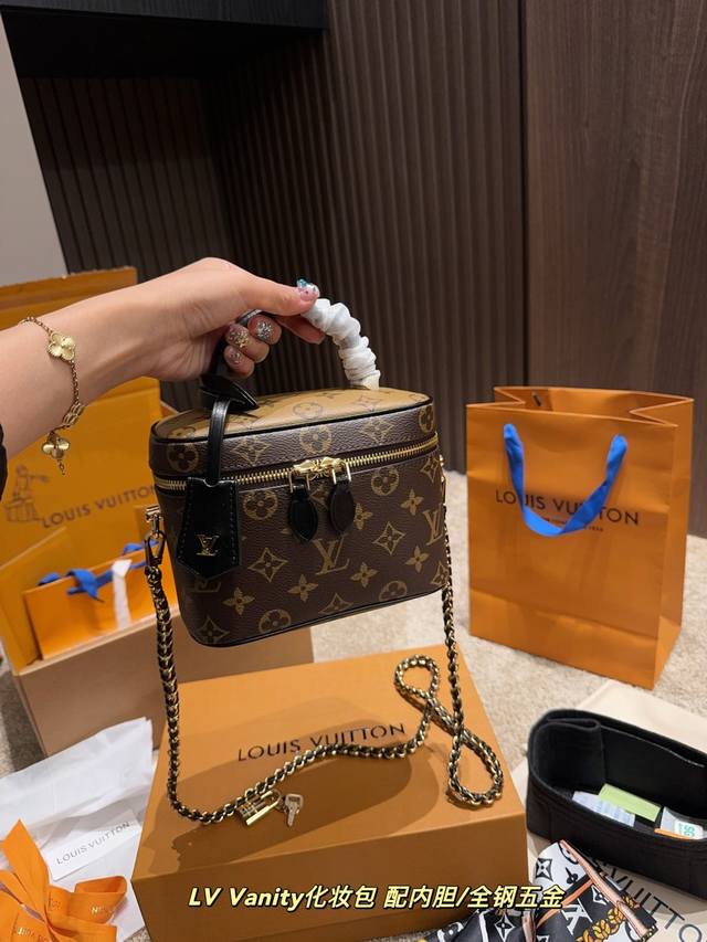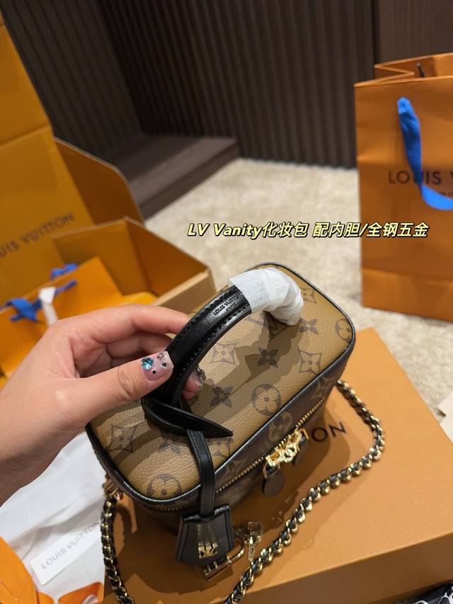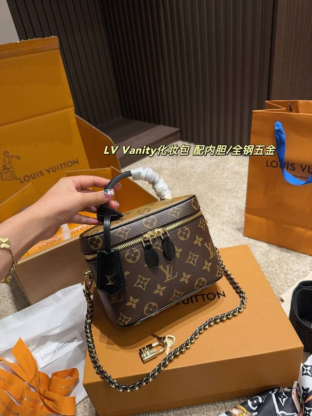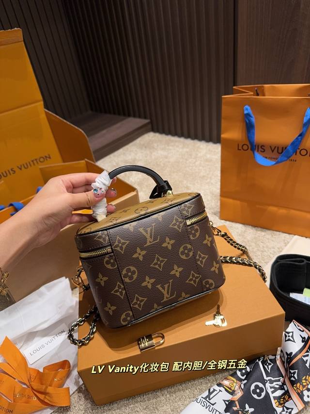 / All-steel hardware complete packaging, size 18.13 Lv Vanity cosmetic bag with i