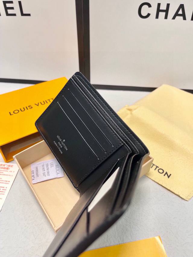 Color Black Size 12X10Lv Official Website Synchronized Classic Model! Ultra-Fine Craftsmanship, Credit Card Slots For Storing Banknotes And Receipts, Support Board Compartment For Storing Cash