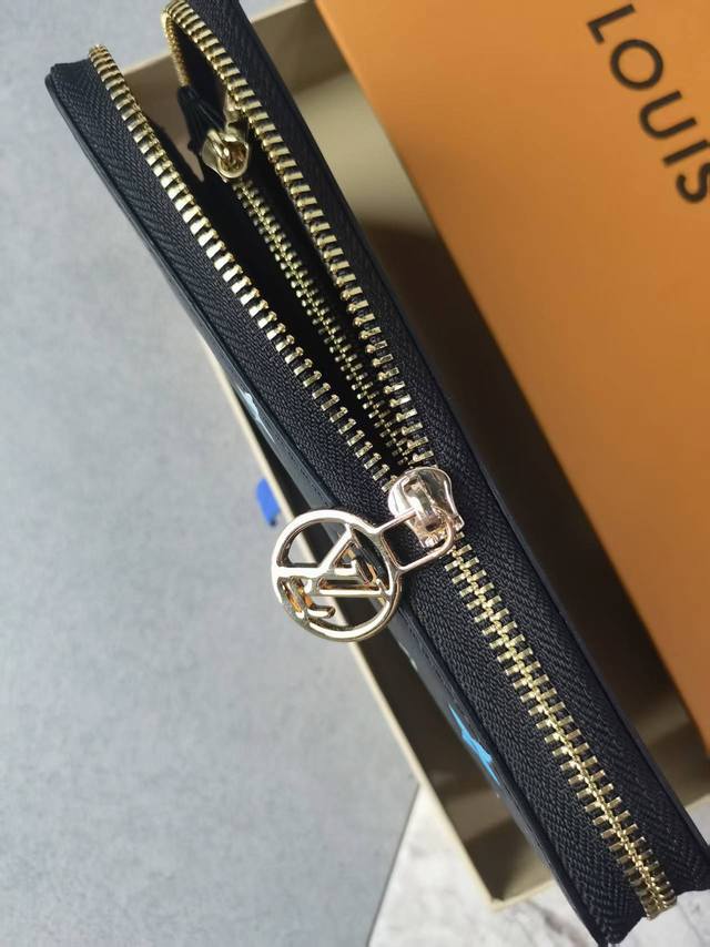Color Black Size 19.5X10.5X2.5M 12152 The Zippy Wallet is crafted from fluffy lambskin and embossed with a monogram pattern. The pink embossing adds a touch of class. The zippered opening with a gold Lv Circle pull completes the sophisticated design. The organized interior features three spacious compartments, a zippered coin pocket, and 12 card slots.