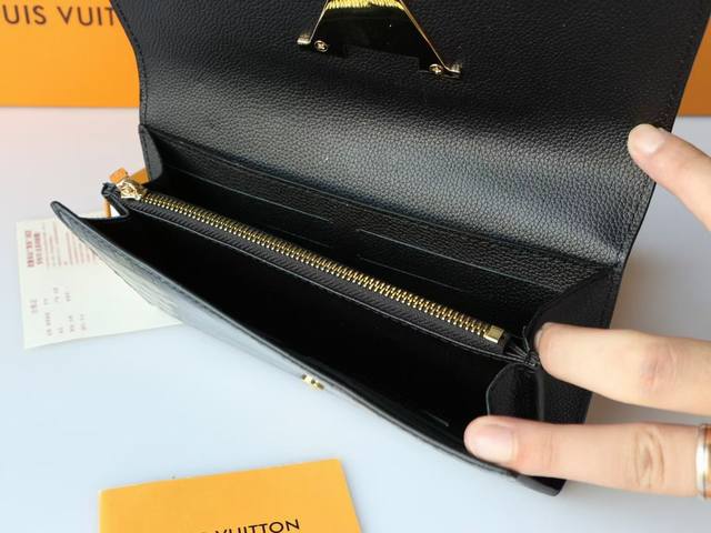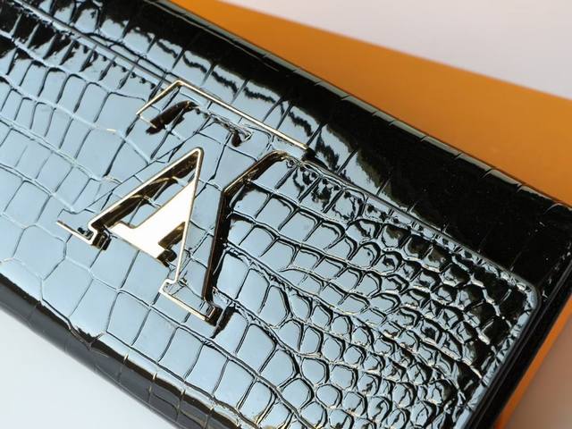 Color Black Size 20X11M99002 The Capucines Wallet Is Made Of Elegant Crocodile Leather, With Smooth Lines And Ample Space. The Lv Snap Button On The Flap Echoes The Iconic Design Of The Neoclassical Capucines Handbag. This Capucines Wallet Embodies Elegance And Luxury.