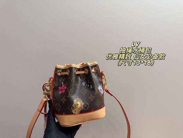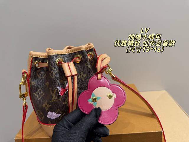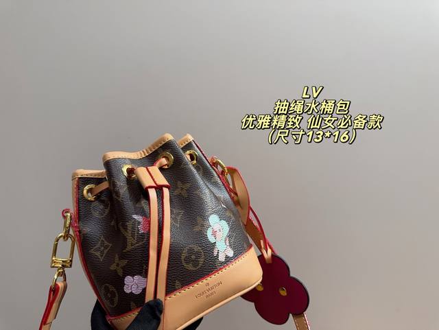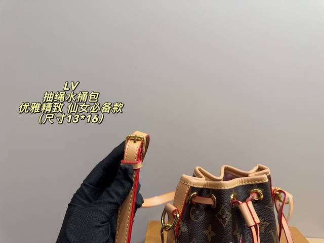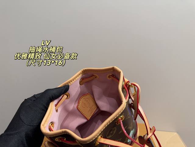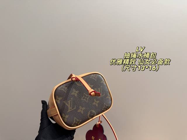 / Comes with a folding box, size 13*16. Lv drawstring bucket bag. Cute and petite