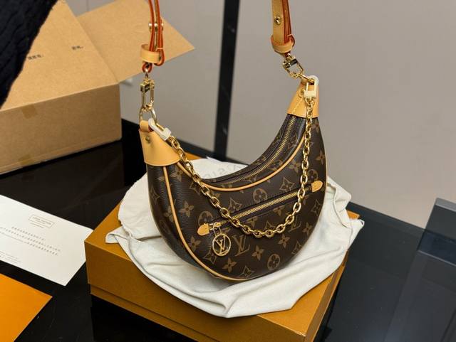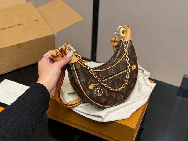 Comes with a folding box/airplane box DDD Size: Top width 23*12Cm Ddd Vintage LV Pea Bag Ddd Crescent Bag! So cute with its curves! Ddd Fashion is a cycle Ddd Original steel hardware! Ddd Now it's even more stylish Ddd Original yellow leather chain! Ddd Hand-carry, underarm, or crossbody DDD