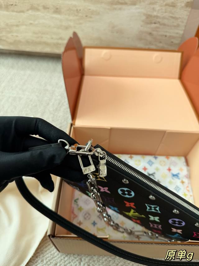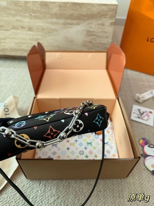 Comes with box DDD Size: 22*13Cm Ddd Lv Takashi Murakami Black Tricolor Mahjong Bag Ddd Mahjong bag shoulder strap looks great when worn under the arm Ddd Black tricolor mahjong bag, Ddd Seriously, everyone who sees it will fall in love Ddd New Year mahjong bag, you're sure to win at mahjong! DDD