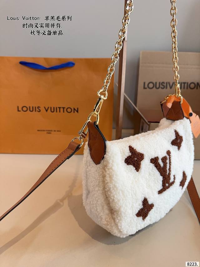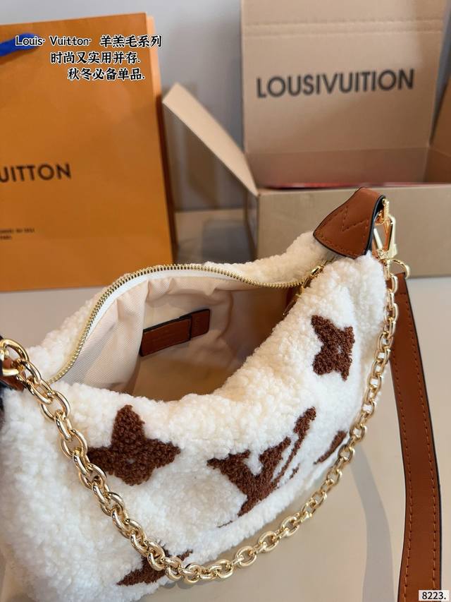 Comes with gift box. LV new lamb wool underarm bag. Retro elegance, a timeless c