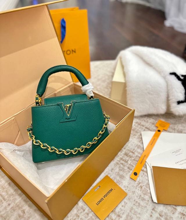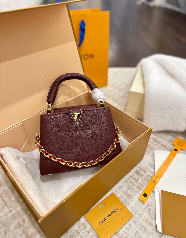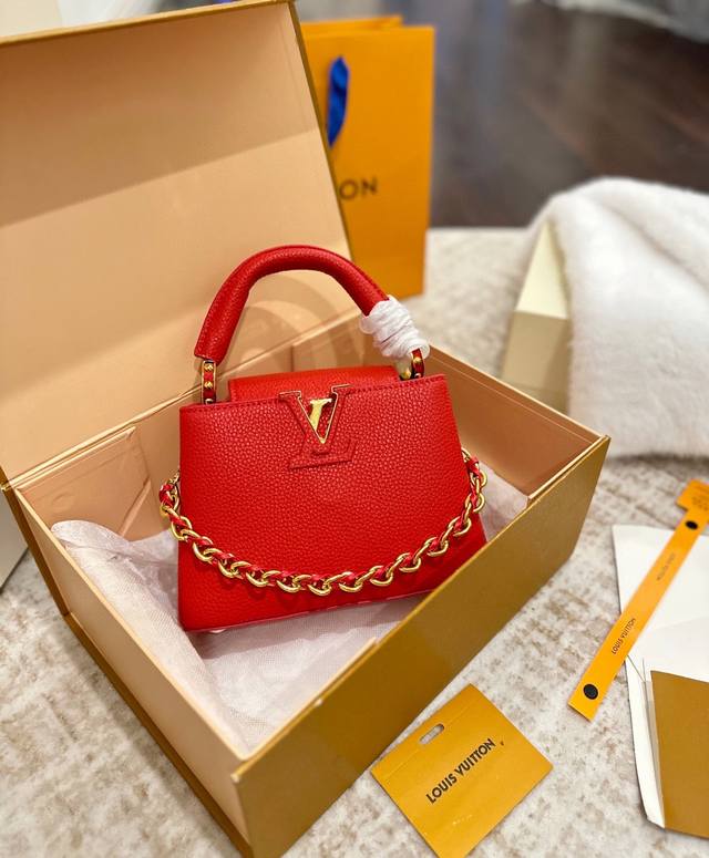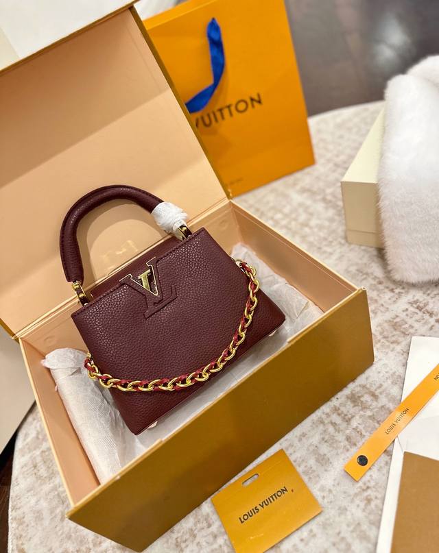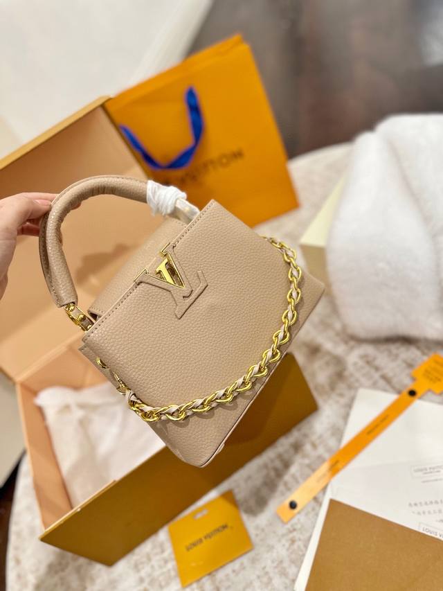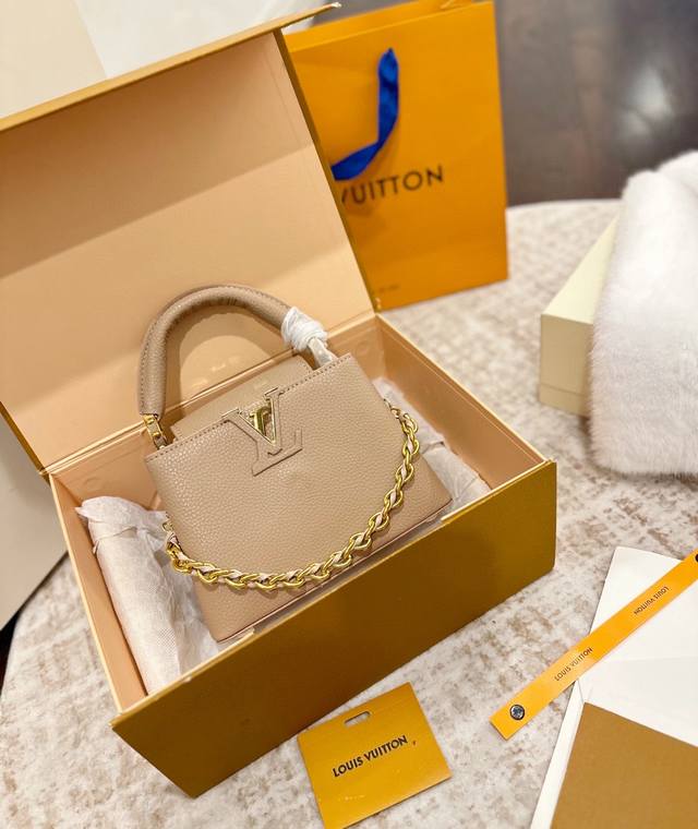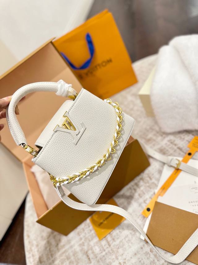 Foldable Gift Box Packaging Ddd LV Capucines Upgraded Version Ddd As one of LV's representative haute couture bags, the Capucines handbag tries different designs every season, paired with new colors, new materials, and new finishes. More high-end temperament Ddd The small size makes it both mature and cute, the pinnacle of style! Ddd The detachable wide shoulder strap allows for a comfortable shoulder or crossbody experience. Ddd The white LV Capucines handbag is simple and refreshing, a timeless style Ddd Size 22 x 15 cm DDD