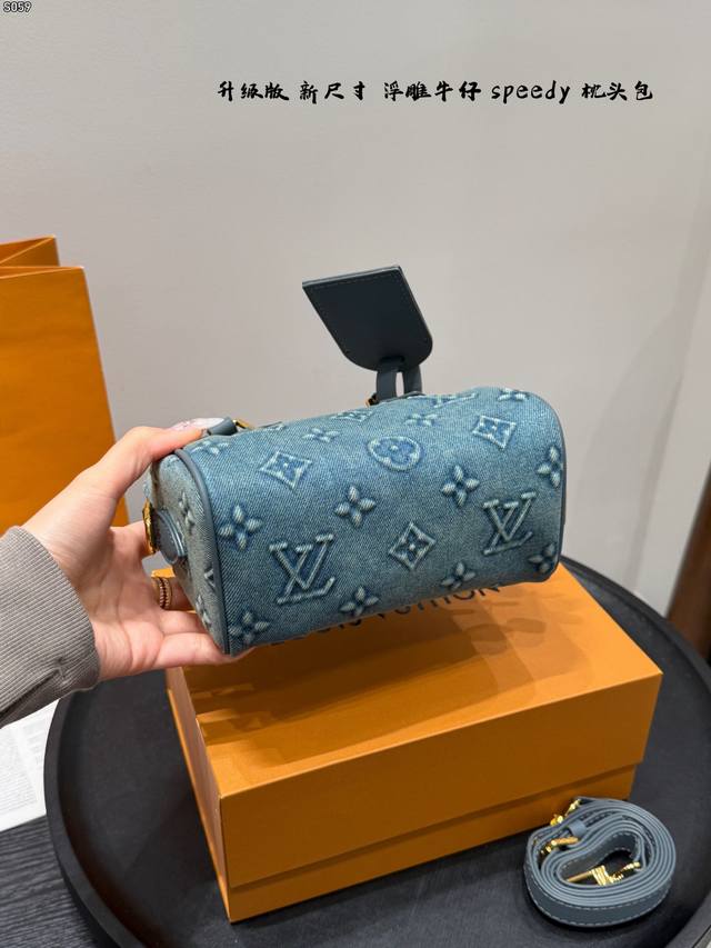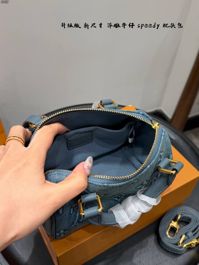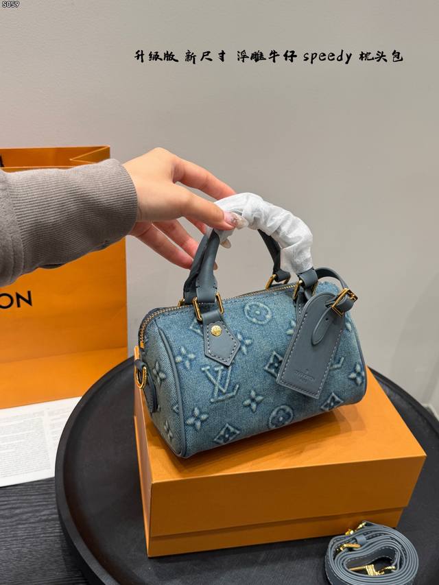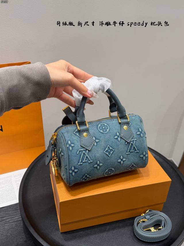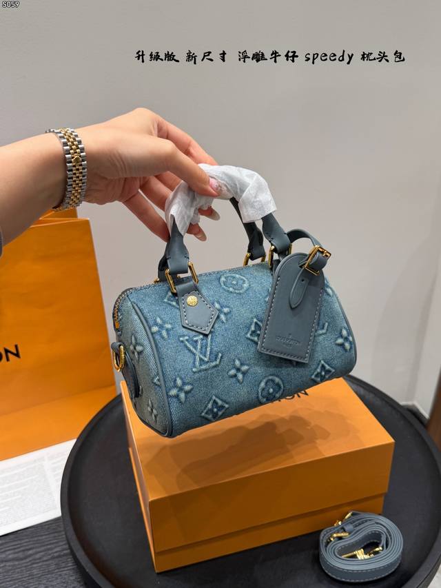 Foldable Gift Box Ddd with Chip! Ddd New Size is Here! Ddd LV Denim Nano Speedy Mini Pillow Bag with Embossed Design Ddd is really exquisite! It will capture your heart at first sight! Ddd Although small, it holds a lot; it can fit lipstick, powder compact, mirror, cardholder, tissues, and earphones. The bag can be carried by hand or crossbody; carrying it by hand is really feminine! Ddd The new model has an adjustable shoulder strap, which can be adjusted according to your height. It also looks great crossbody! Ddd You can choose the size according to your daily clothing style Ddd Size 18.11Cm DDD