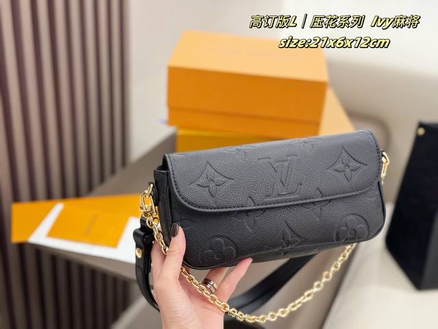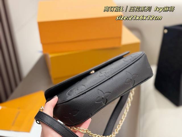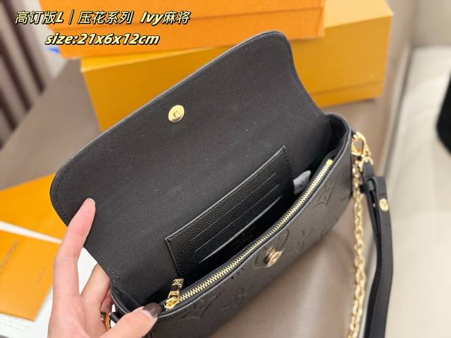 Folding Box Lv Embossed Series Lvy Mahjong Wallet On Chainlvy handbag features a