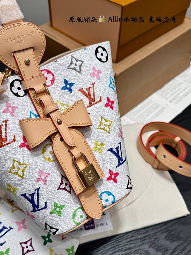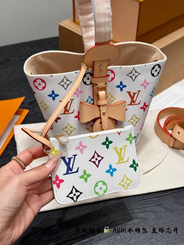 Full gift box packaging Ddd Original lock, variable code chip, steel hardware Ddd Size: 17*18Cm Ddd Lv Takashi Murakami collaboration white tricolor Ddd 25 The most worthwhile white tricolor Allinbb bucket bag Ddd One bag, multiple ways to wear it, and the styles are also very different Ddd I feel that it is more suitable for crossbody wear in autumn and winter Ddd In spring and summer, you can carry it alone, just like a shopping basket Ddd You can adjust the way of wearing it according to your outfit. One bag can do many things. The design is really strong Ddd It has a small coin purse, a small leather tag, and a small pocket, which enhances the overall sophistication DDD