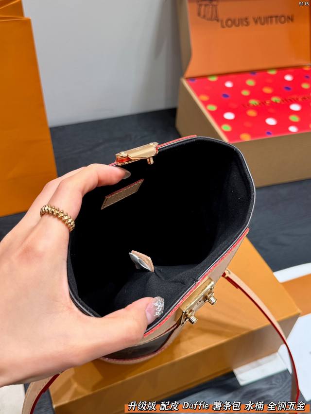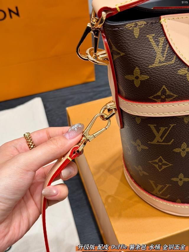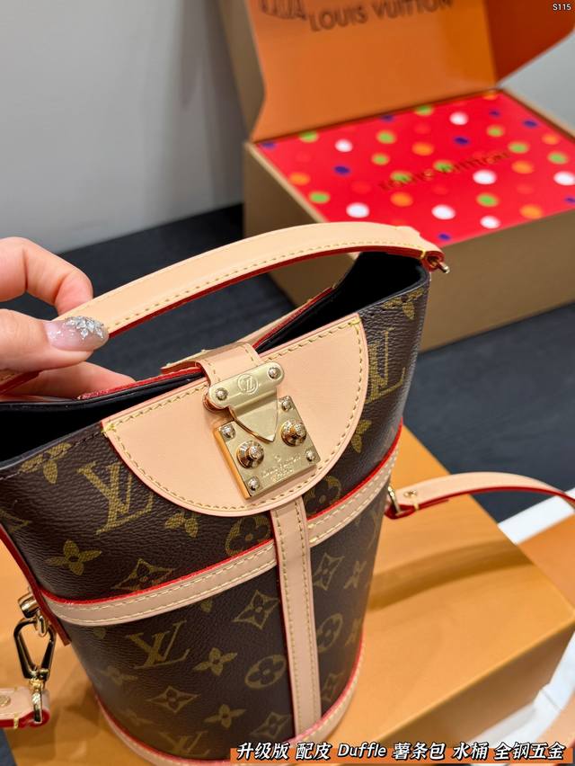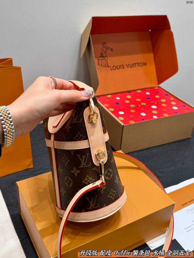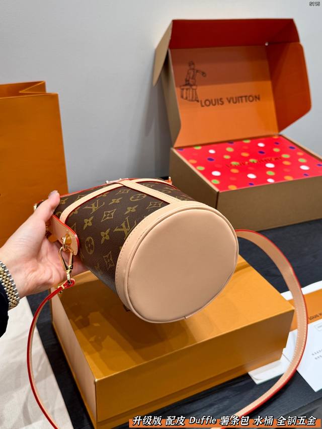 Full gift set, upgraded all-steel hardware! Louis Vuitton monogram Duffle bag! Bucket bag, original hardware! Top-grade color-changing leather! The matching color-changing leather is absolutely stunning! Size: Height 22cm, bottom diameter 15cm.