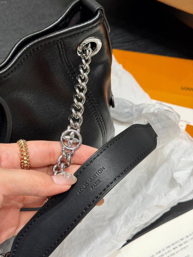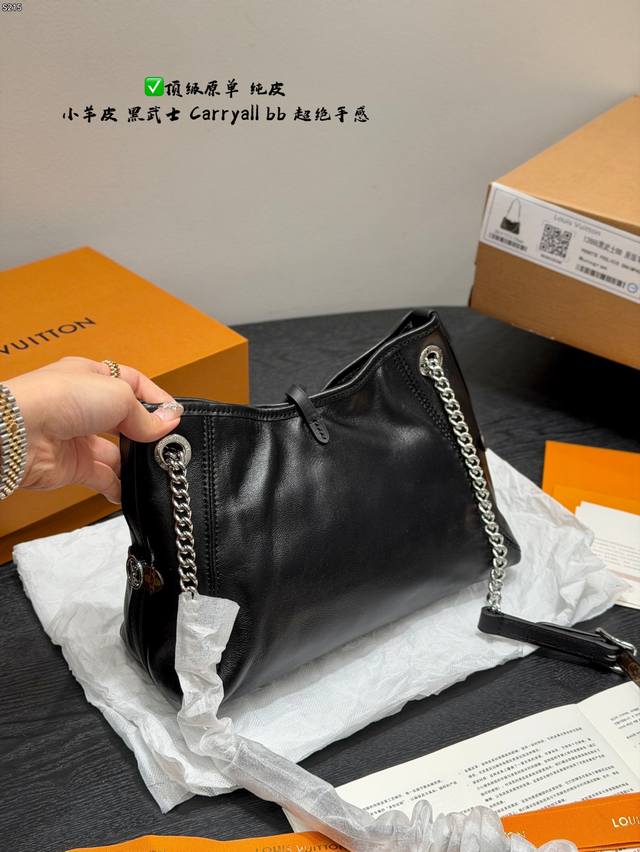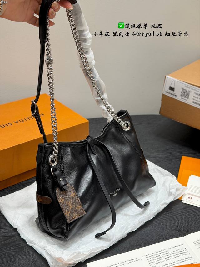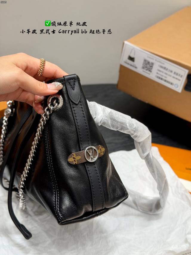 Full packaging Ddd Genuine lambskin top-grade original Ddd LV lambskin Carryall Vibebb Black Warrior Tote bag, waxed lambskin + silver chain, dark and cool style full marks Ddd Dimensions 26X17X10Cm DDD