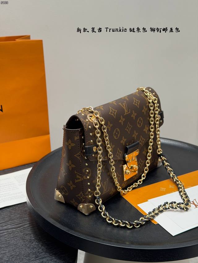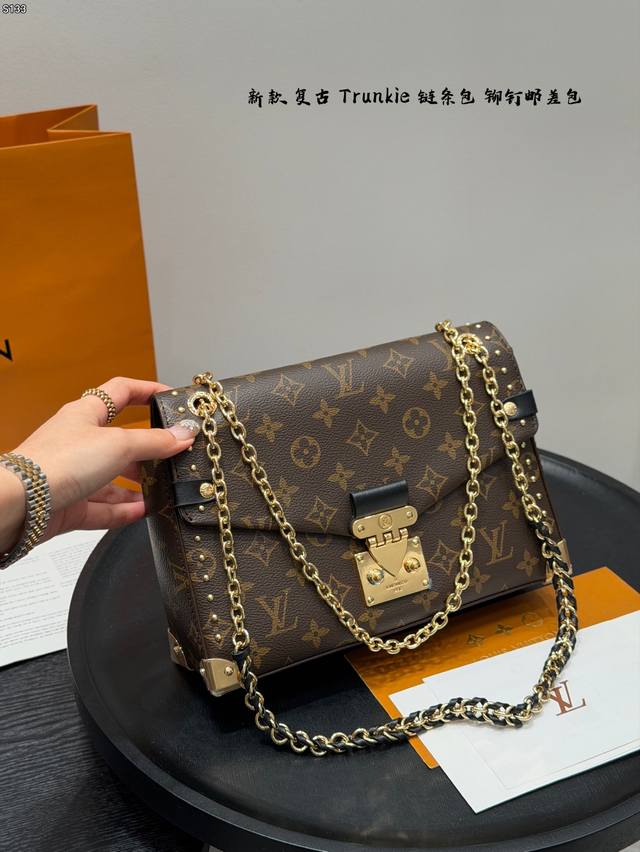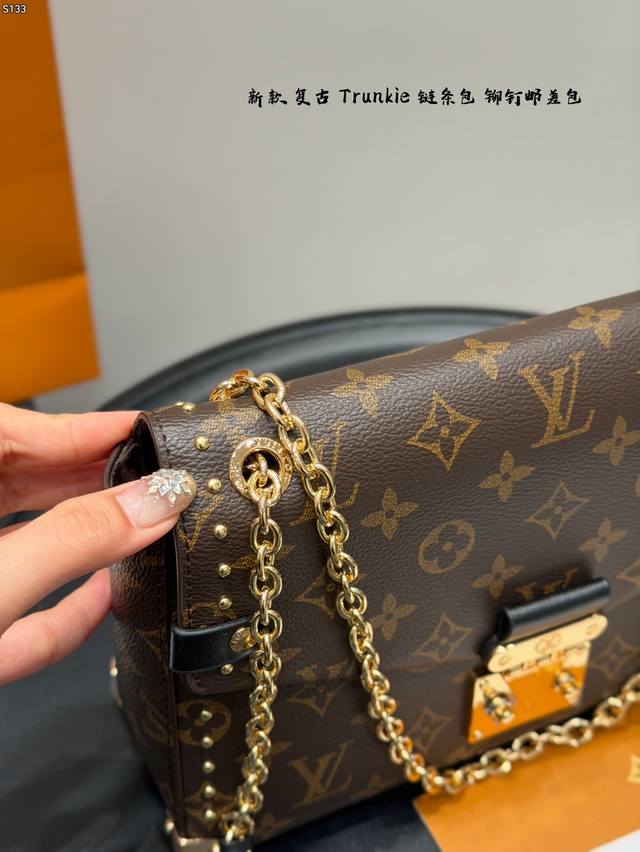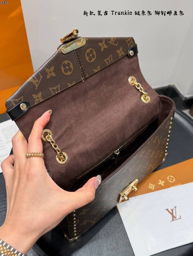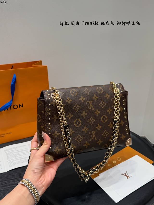 Gift Box Packaging DDD Modern Retro | A super stylish LV bag! Ddd New LV Trunkie Chain Bag with Rivets Messenger Bag Ddd Classic monogram, timeless, exquisite metal design Ddd A very stylish double chain shoulder/crossbody bag with a little fringe Ddd Elegant and classy look, effortlessly chic~ Ddd Size 26*17Cm DDD