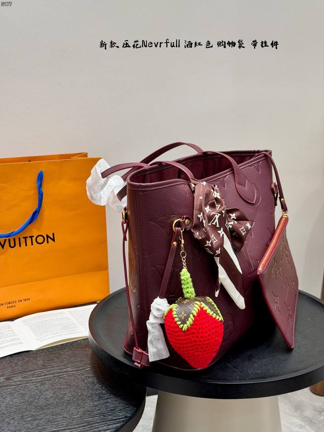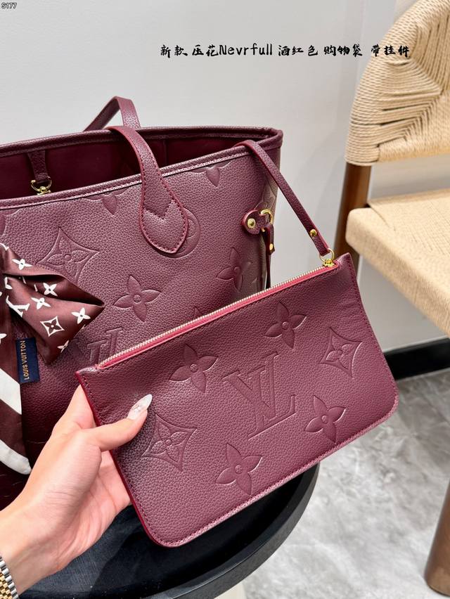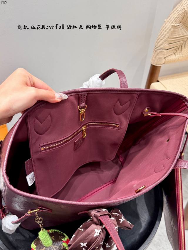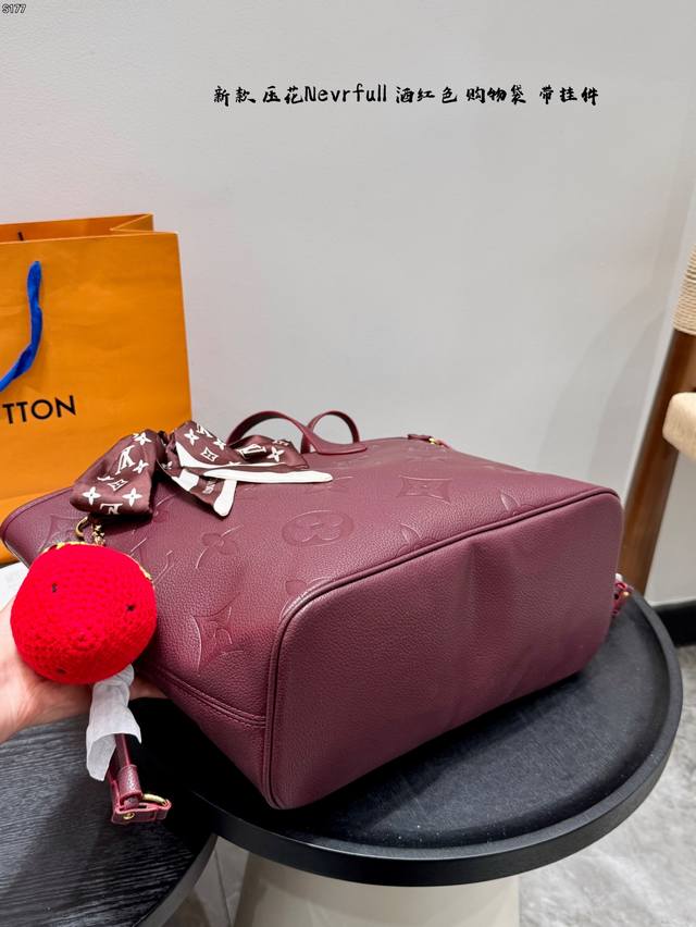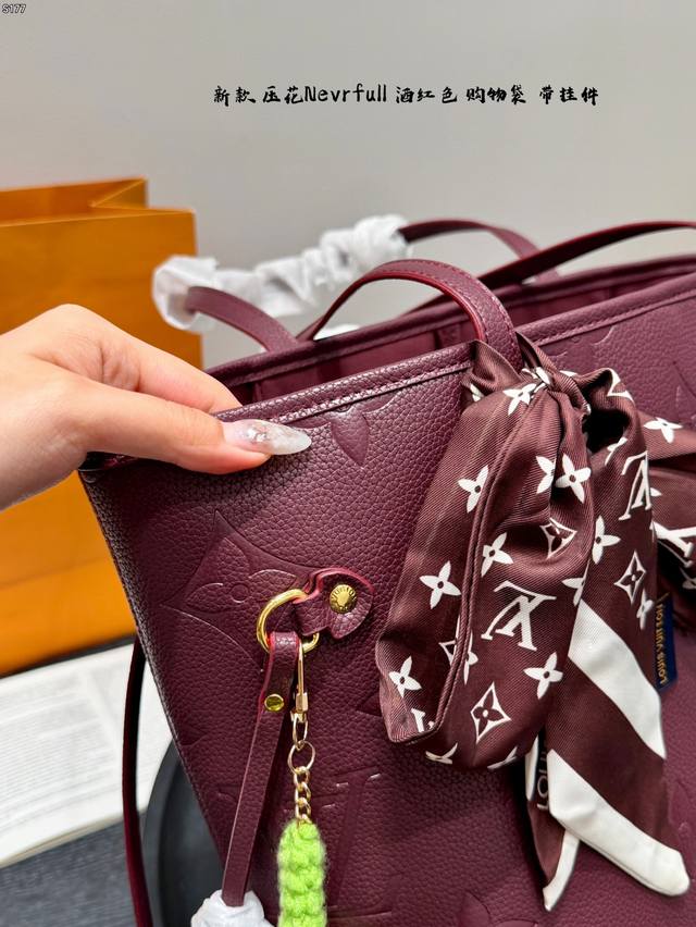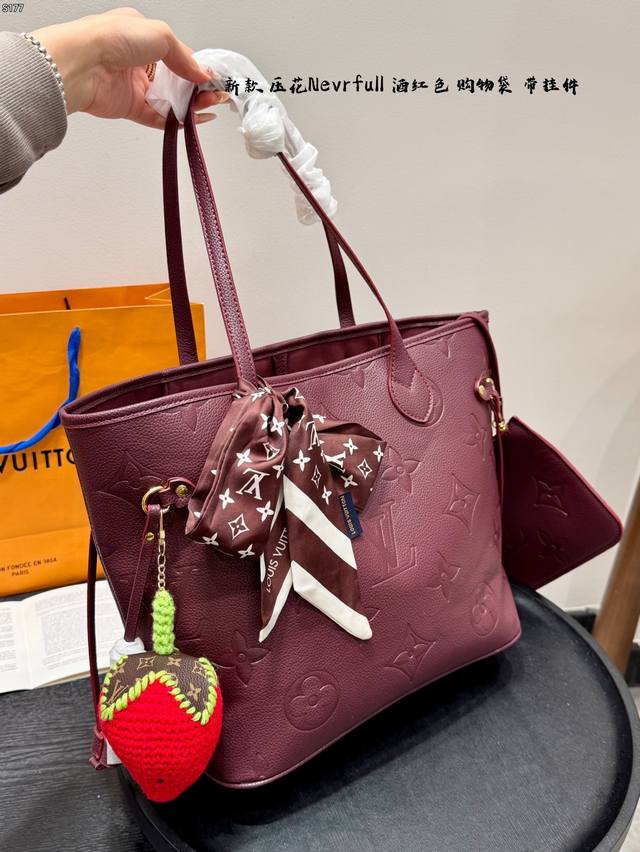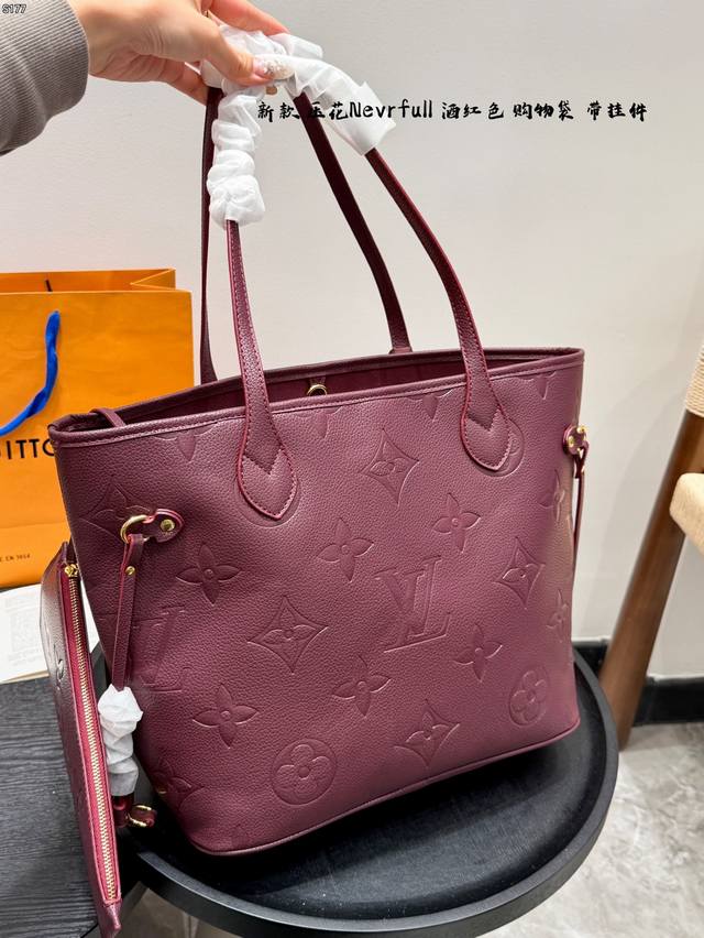Lv25Fw burgundy embossed Neverfull classic tote bag